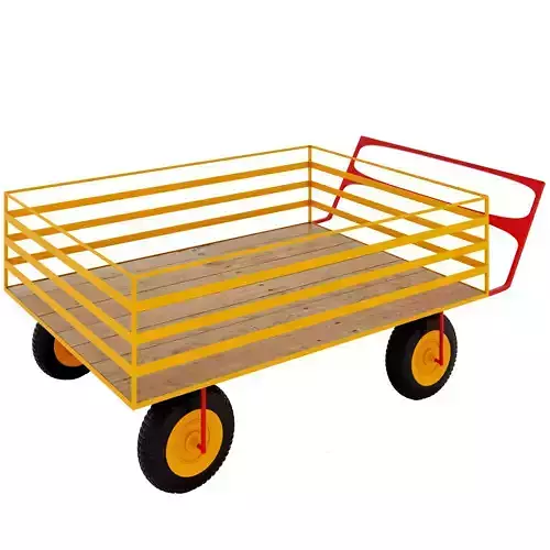 trolley wooden cart with wheels 3D model