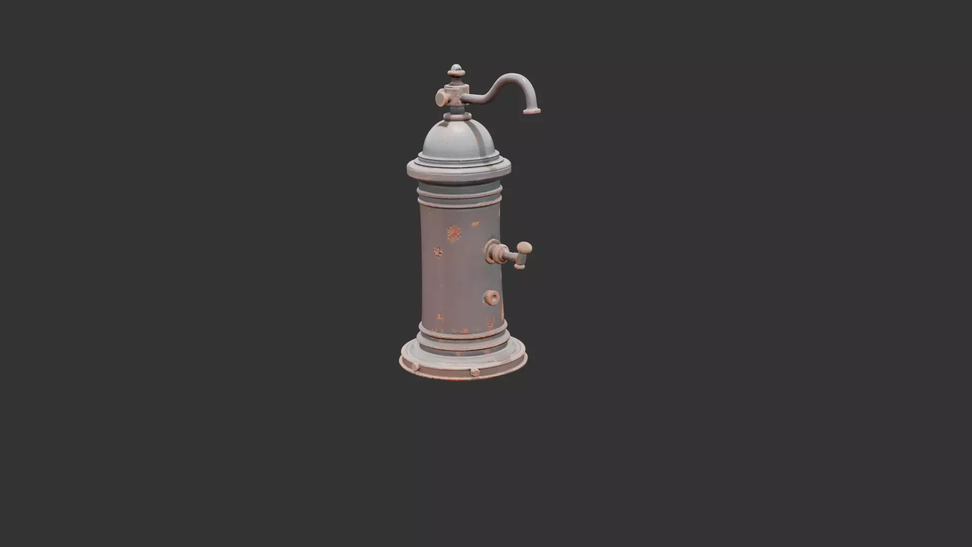 This vintage cast iron water pump is modeled after classic hand-operated pumps seen in rural gardens or farms. The pump features a long curved handle, a spout with mineral buildup, and a round base mounted to a stone slab. The surface includes rust, chipped paint, and wear marks that reflect years of use. Ideal for exterior garden scenes, old farms, or fantasy villages, this prop adds charm and realism to any outdoor setting. It works well in both stylized and photoreal environments and is optimized for easy scene integration.