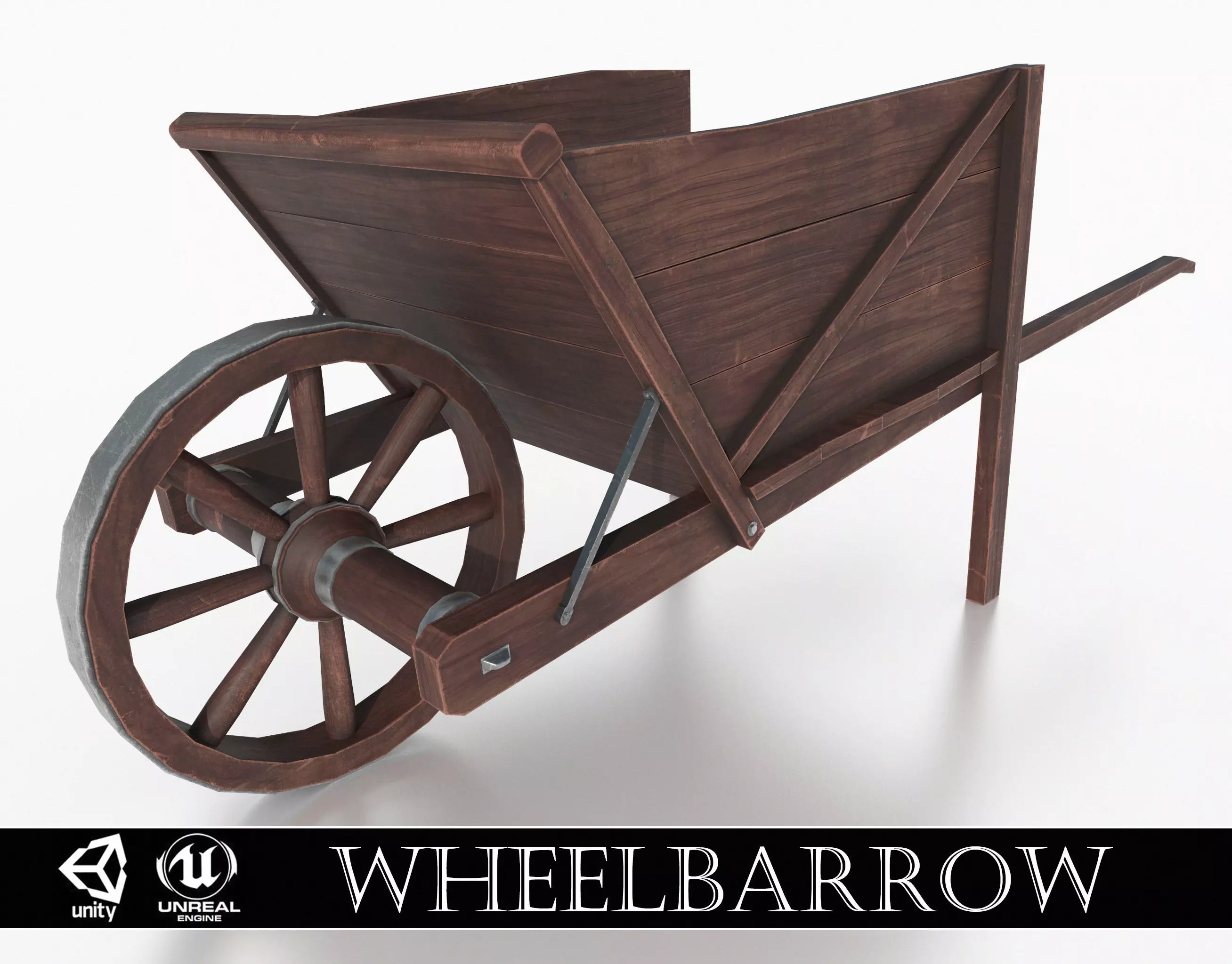 Western - Wooden Wheelbarrow Low-poly 3D model