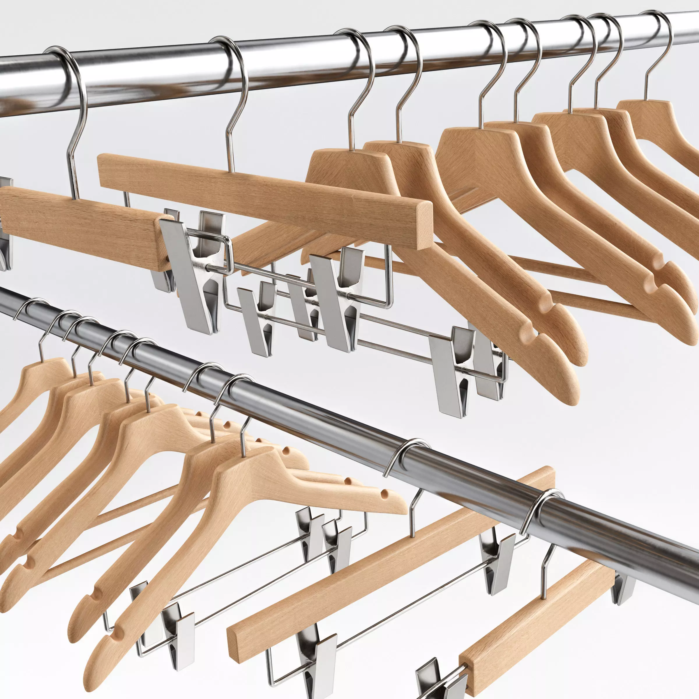 A collection of 3D models of 9 types of Wooden Clothes Hangers.