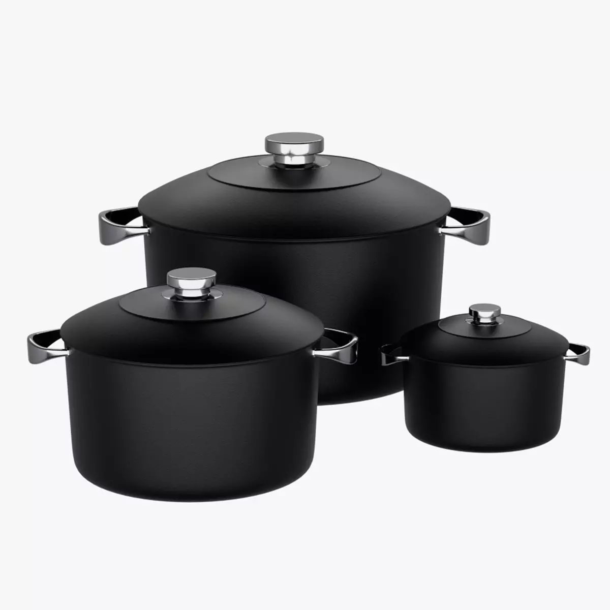 Stock pots sizes are approximately 8 cm, 12 cm and 16 cm.Total objects: Each model contains 4 separate objects parented to an Empty.Total vertices and faces per stock pot: