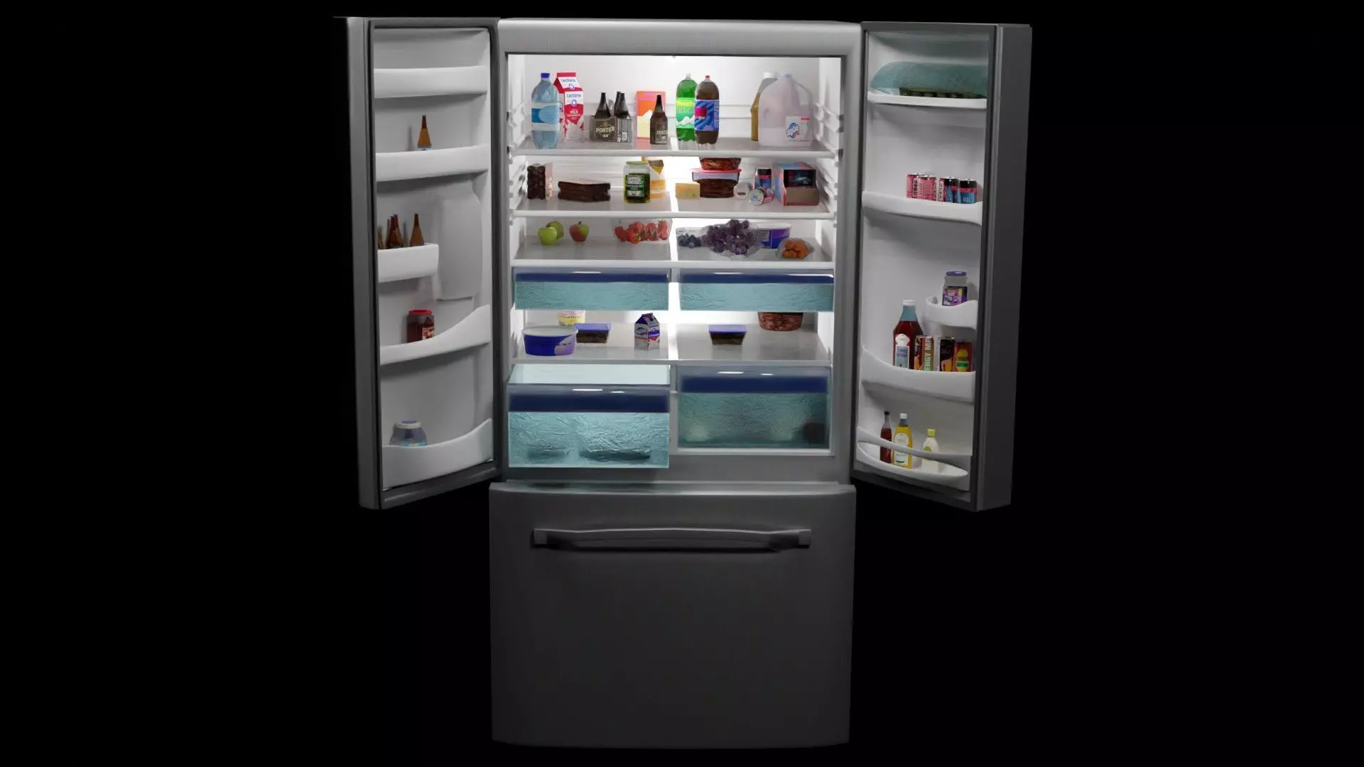 The model has material settings that define how surfaces look (color, shine, transparency, etc.).