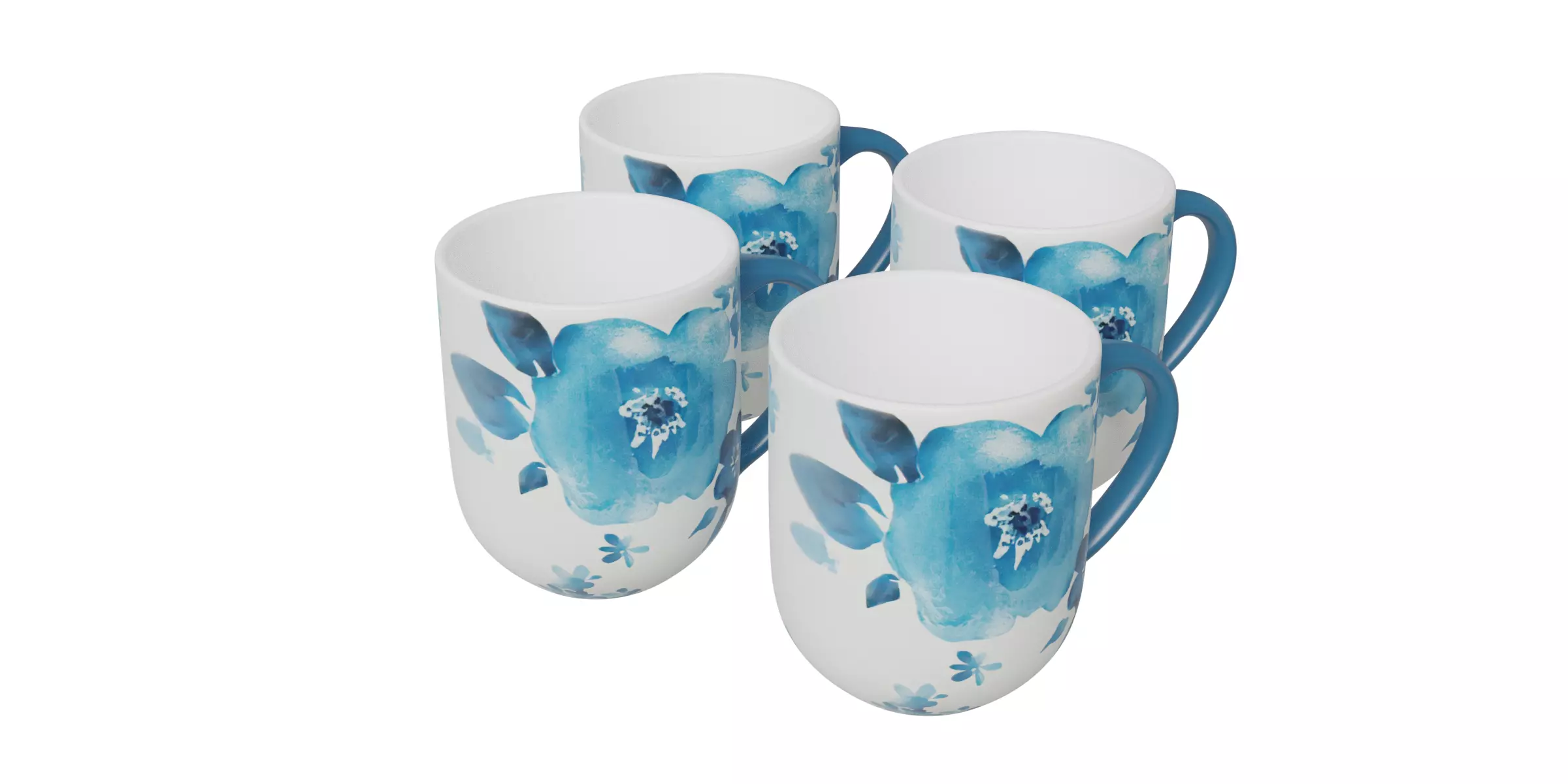 Azure Floral Mugs 3D model