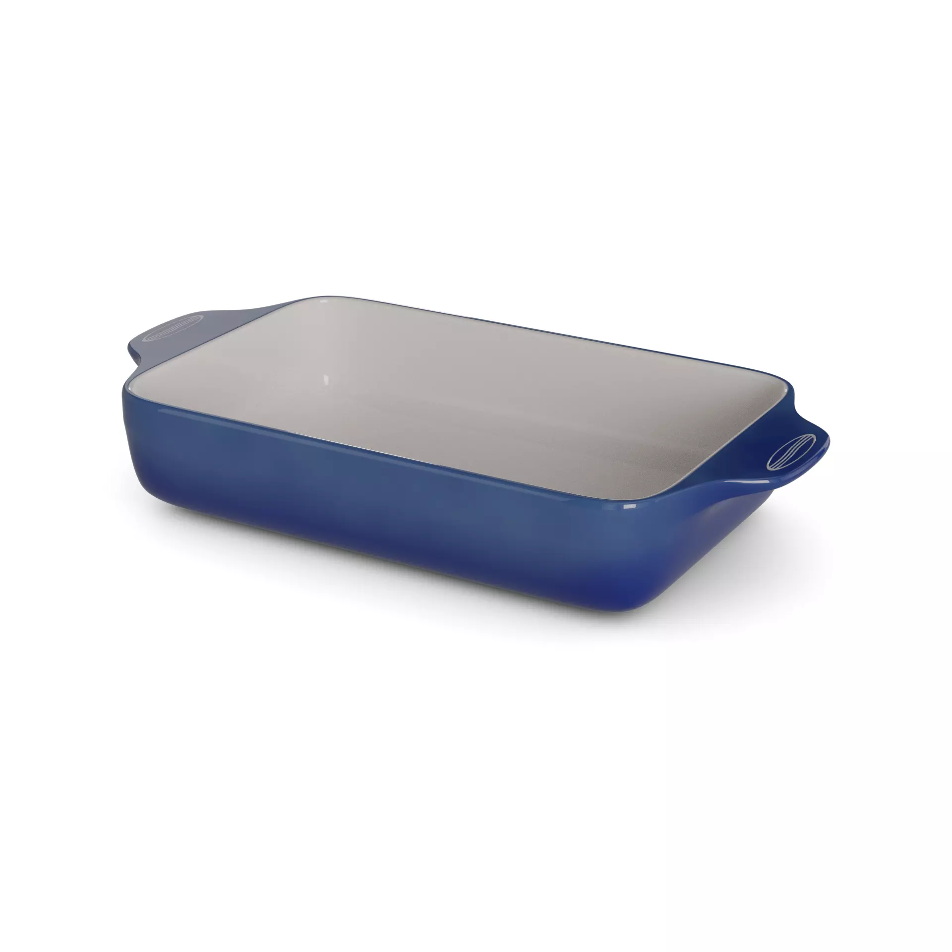Deep Baking Dish: This deep baking dish is designed for those who love to bake hearty and deep-dish recipes. The sturdy metal construction ensures even heat distribution for perfectly cooked meals. It has a square shape and a depth of 3 inches, allowing you to create delicious layered dishes. The dish comes with a non-stick coating, making it easy to release your baked goods without any hassle. The exterior of the dish features a vibrant blue color, adding a pop of color to your kitchen. The dish is dishwasher safe, making cleanup a breeze.
