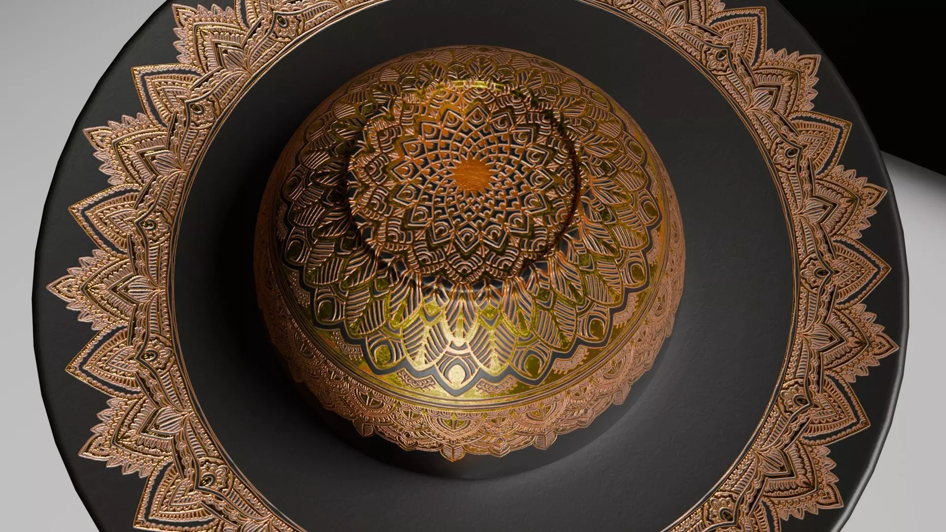 Mandala Plate Vertices: 2,354Edges: 7,056Faces: 4,704Triangles: 4,704