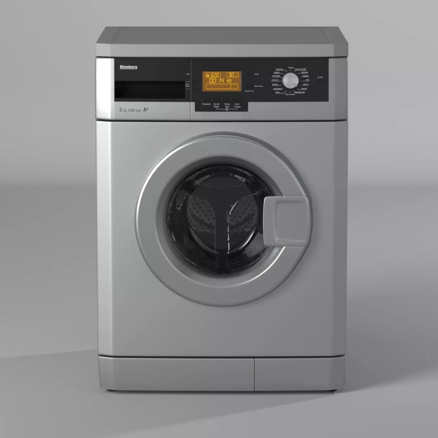 Blomberg Waching Machine,Modern black and silver houseware.Suitable for minimal kitchen design.6kg capacity and dimension of 60cm(width),50cm(depth)and 84.6cm(height).Color:Silver(matte) and black panel. Poly count:291000.Render engine supported: Vray 3.5 & Corona 2.Optimized for archviz.