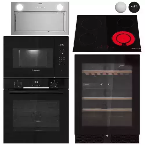 A set of built-in kitchen appliances Bosch Series | 62 colors: black and white. If necessary, the color can be easily edited with a CoronaColor/VRayColor card named Main Color.The model is displayed correctly in both Corona and VRay