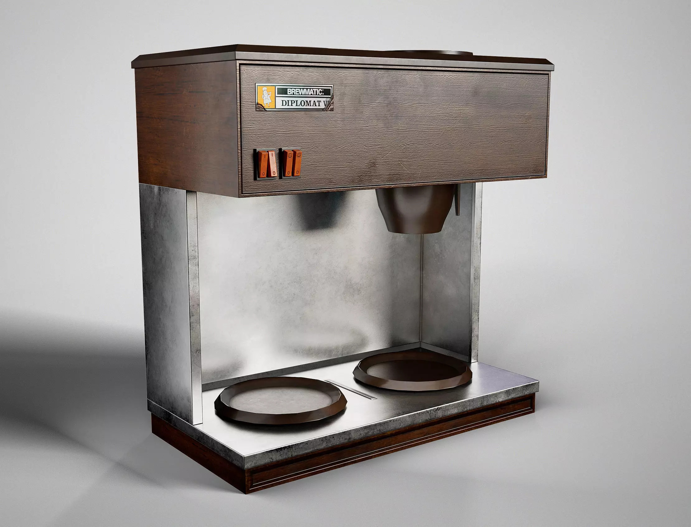 This is a highly detailed, PBR, low-poly, game ready model of an old commercial coffemaker from 1950's - Brewmatic Diplomat. This famous coffee brewer could be found in almost every american cafe, restaurant, diner, coffee shop, etc.It was modeled by me in Autodesk Maya 2022, textured in Substance Painter and rendered with Arnold in Autodesk Maya. The model is fully optimized, ready for games, AR/VR and visualization and ready to import into the Unreal Engine - proper textures are included!