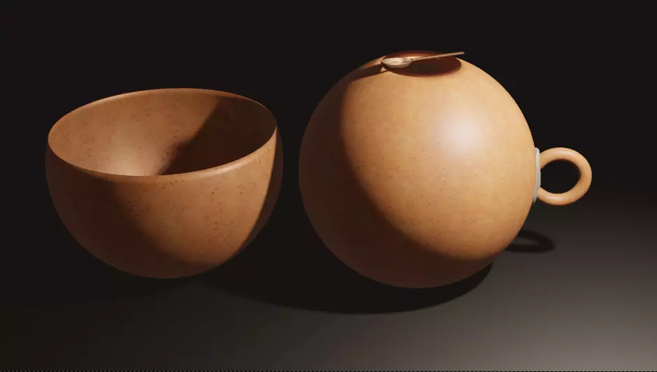 The model has material settings that define how surfaces look (color, shine, transparency, etc.).