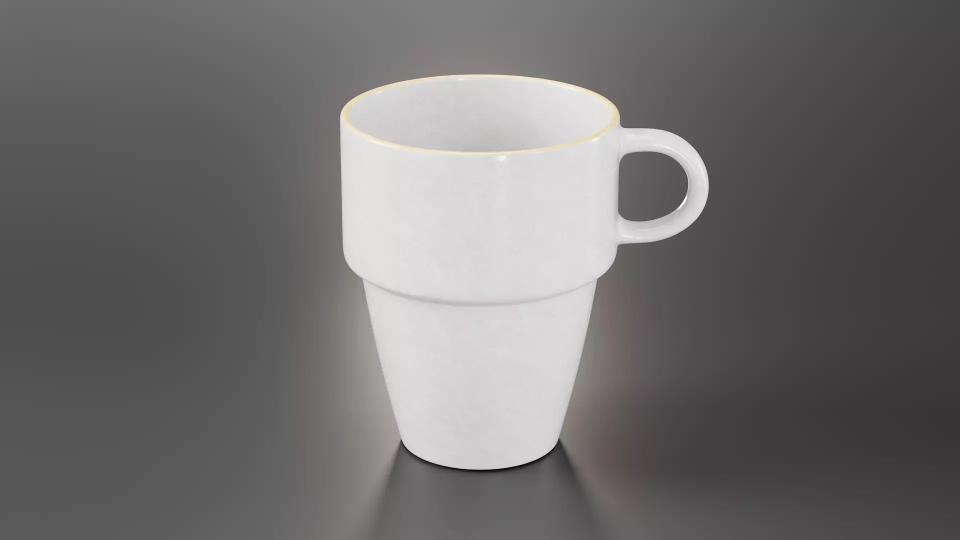 High-quality model of a ceramic cup with yellow border. Modeled to real scale in centimeters.