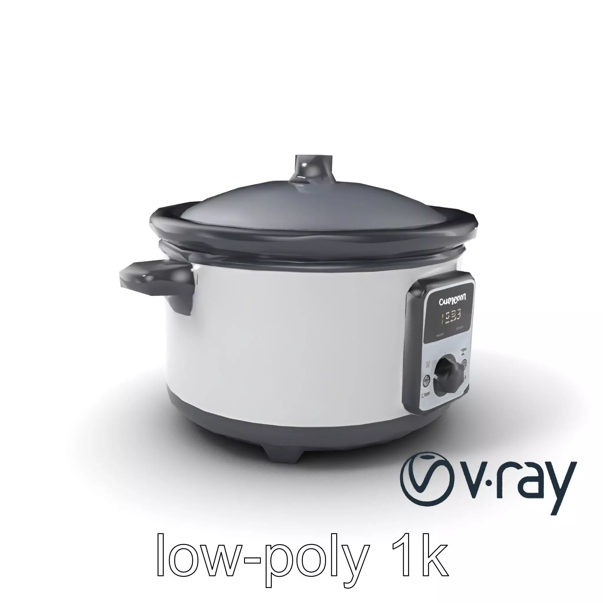 The compact slow cooker with a modern ceramic pot is ideal for virtual kitchen simulations, interactive tutorials, or digital product showcases. Its modern design features a digital timer and intuitive control panel, making it perfect for realistic culinary visualizations.