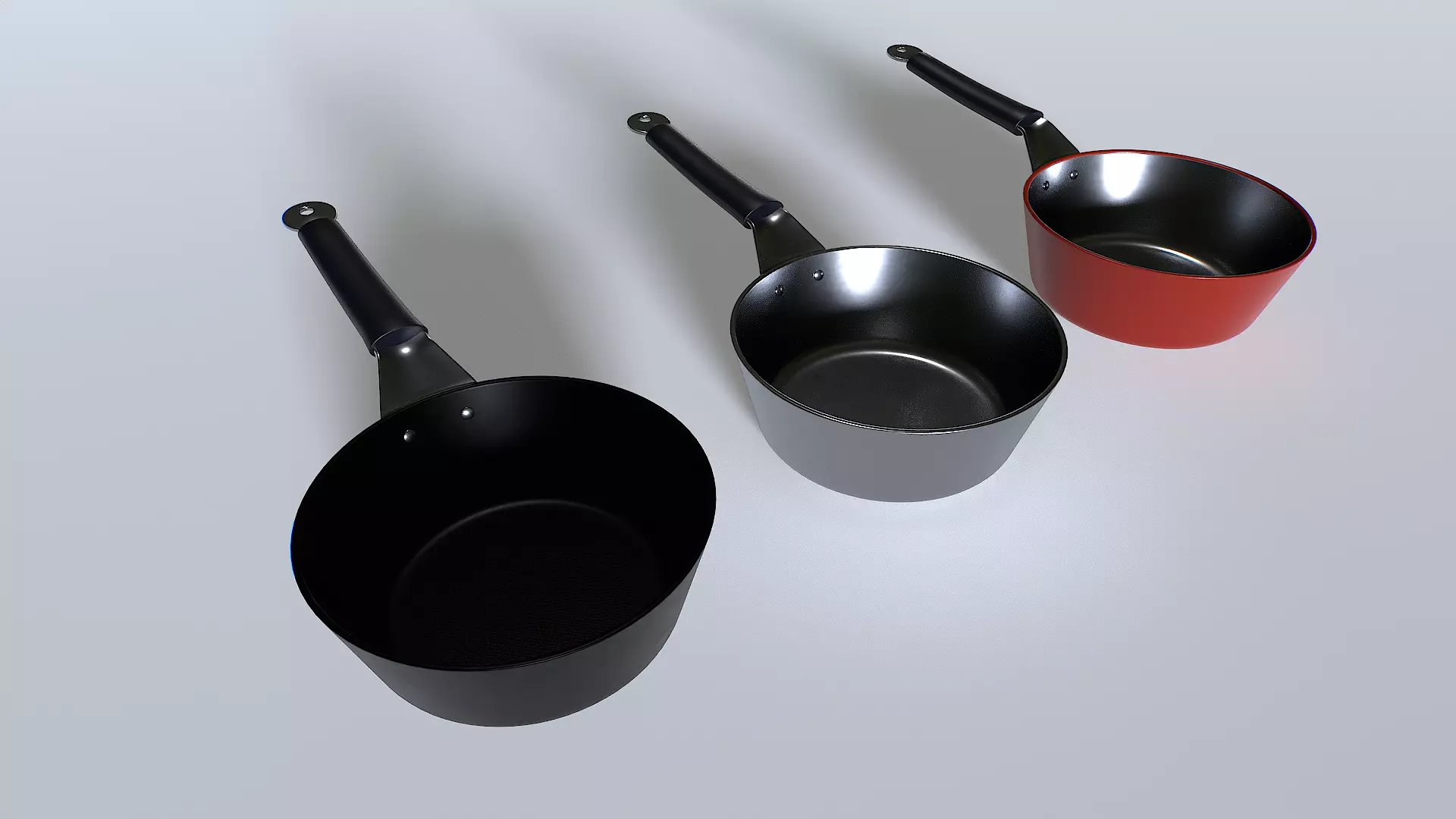 Pack of cooking pots. Real scale but scale as you needs. 1 material.
