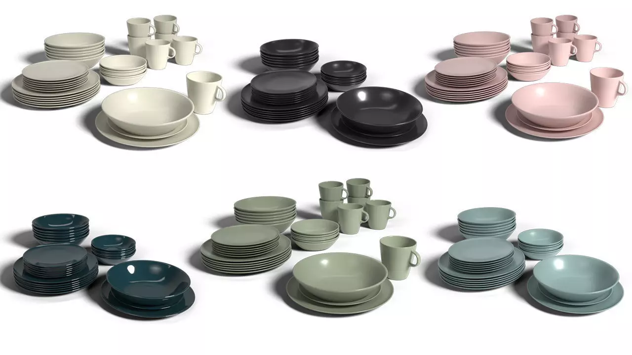 Dinnerware service - plates with bowls and mugs 3D model