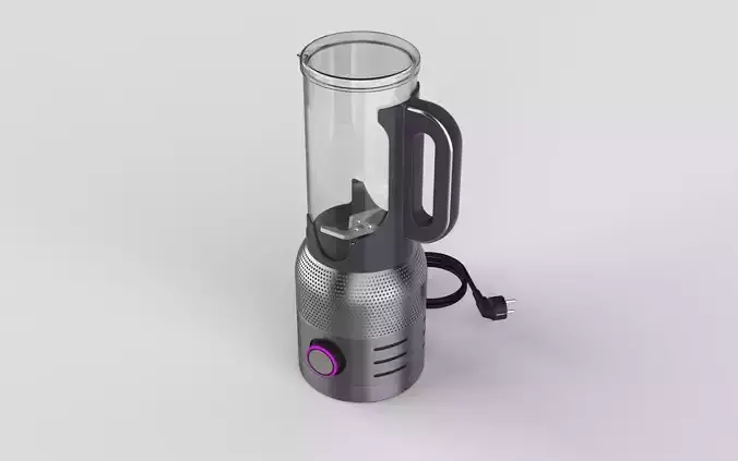 This 3D model reimagines the traditional blender as a high-tech luxury appliance. It features Dyson's iconic perforated metal intake aesthetic at the base, a sleek ergonomic handle, and a glowing LED control knob. Designed in SolidWorks, it boasts clean CAD geometry and premium material finishes, making it perfect for high-end product visualizations and interior renders.