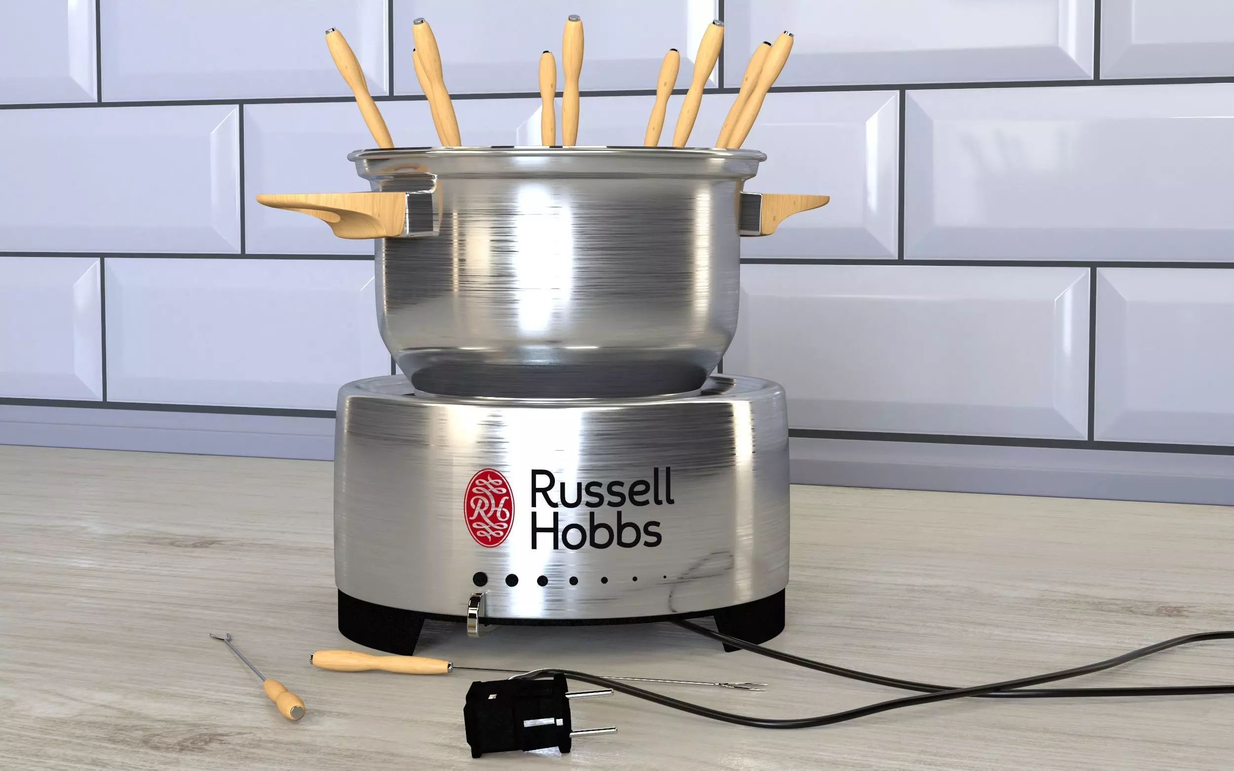 This is an electric fondue maker from Russell Hobbs, it's no advertising, just wanted to put some logo on it to make it more interesting :) It is not a simple copy of an existing device but a modification of a one. Important:You can download a lot of files, like 3ds Max 2017 archivated scene with ALL materials and settings, so you dont need to do anything, its ready for you scene. When you open the last folder of this archive, you will find all maps and textures for, used for the model. You can also download 3ds Max 2017 and 2019 files (all Max files contain the whole scene) and OBJ, FBX, STL and MTL files of the model (fondue set is separate from walls and floor in these file formats). I have also added a rps file with V ray settings for you maybe to use it as a preset. FBX model has no materials but if you open it in 3ds Max you still can make a render with materials and Pick Material Tool also works. I dont work with FBX file formats so i dont know a lot about how the materials there work, but i think, you know how to do everything with that. I did my best with this model, it has no trash, the grid is very good everywere. I have also added a small 3 minutes guide for you to know how the material of the logo is made (it`s Vray blend MTL with base - steel material) and which problems you can gave with it and how you can solve them. It is not a big deal, but to be sure that you will have no problems with the model. So, i hope i will enjoy my work. Thank you for your attantion. Contact me, if you need something.