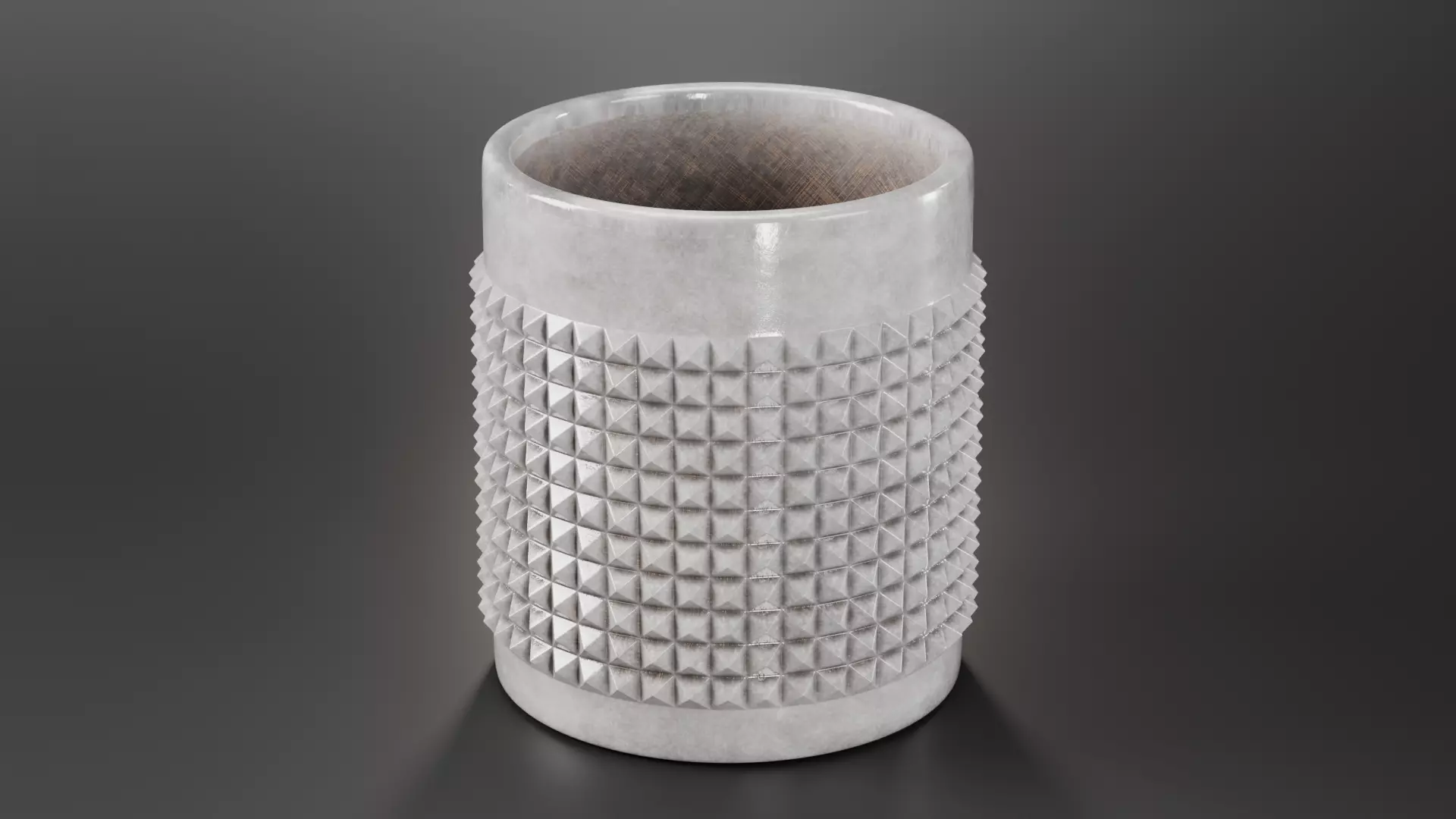 High-quality model of a cup with a faceted design in the form of little poked squares, optimized for animation / product rendering.