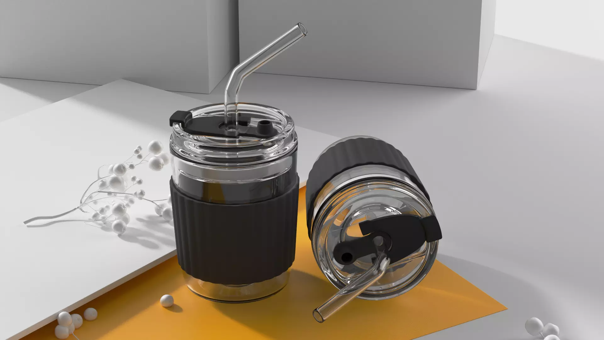 Immerse yourself in the elegance of this meticulously crafted 3D scene featuring a stunning glass jar. The jar, made of high-quality transparent glass, boasts a sleek design that effortlessly catches the eye. Its seamless integration with a thick, durable rubber-sealed lid ensures optimum freshness and security for the contents within.