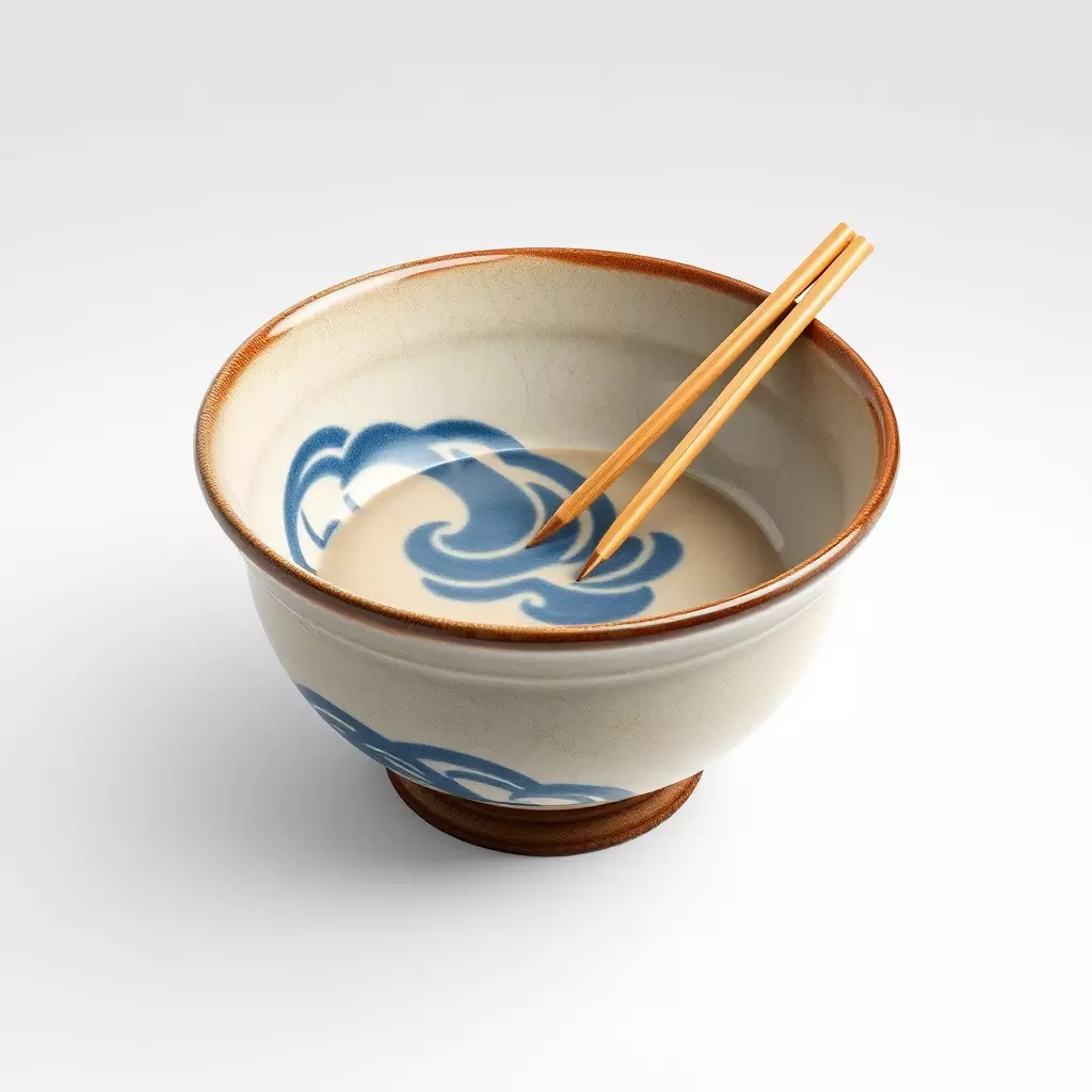 This highly detailed 3D model presents a traditional Japanese-style ceramic ramen bowl, complete with an elegant blue wave pattern and a distinct cracked texture, giving it an authentic, aged appearance. The bowl is depicted containing a light-colored liquid, suggestive of broth, with a pair of finely crafted wooden chopsticks resting gracefully within. This versatile asset is perfect for a wide range of digital applications, including realistic kitchen and dining room architectural visualizations, immersive game environments as a decorative prop or functional item, and engaging augmented reality (AR) or virtual reality (VR) experiences. Its optimized topology and PBR (Physically Based Rendering) textures ensure stunning visual fidelity for both real-time applications and high-quality static renders. The model comes fully UV unwrapped for easy texture customization and is available in multiple widely supported formats such as GLB, OBJ, FBX, USD, DAE, and PLY, ensuring compatibility across various 3D software and engines. It's ready to be dropped into any scene, providing an immediate touch of cultural authenticity and realism, making it ideal for close-up shots and interactive experiences.