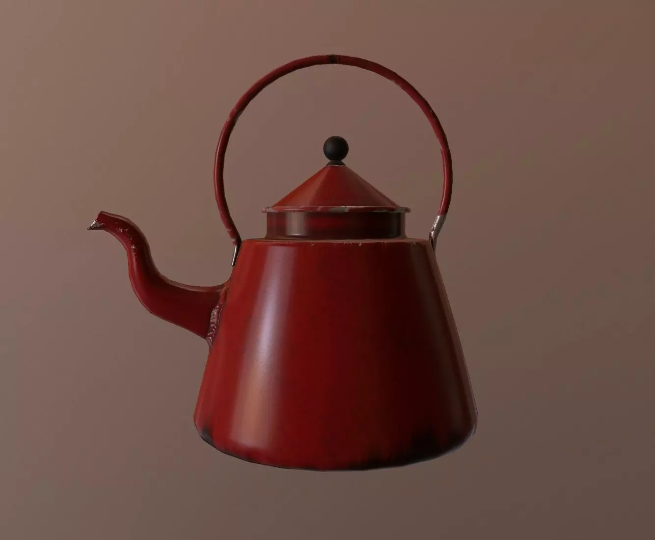 Low poly Red enamelled kettle ready for any game engine. PBR textures