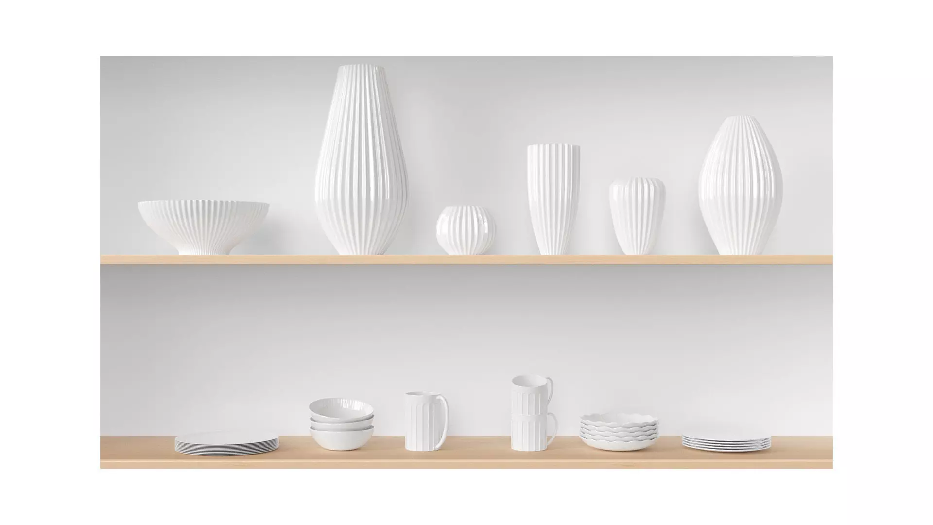 This pack includes 2x West Elm sets of Stoneware - Sanibel Textured Ceramic Vases & Curated Stoneware Scalloped Dinnerware. Textured White Ceramic Vases pop whether or not they are displaying botanicals thanks to the sleek, patterned exterior. The rounded shape on our Scalloped Dinnerware draws inspiration from Japanese ceramics. Though delicate in appearance, each piece is made of hardy stoneware, adding simple sophistication to meals big and small alike.