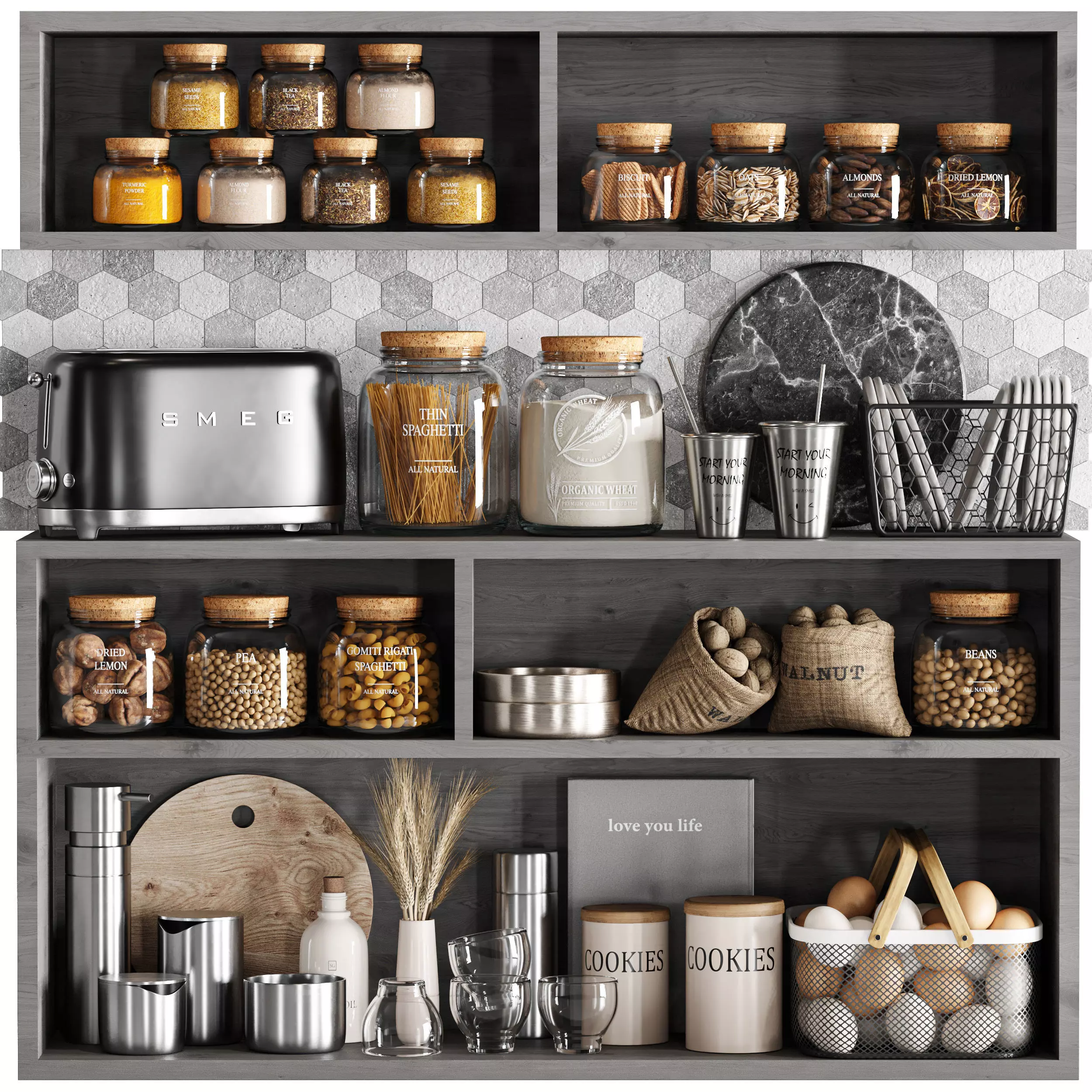 The model has material settings that define how surfaces look (color, shine, transparency, etc.).