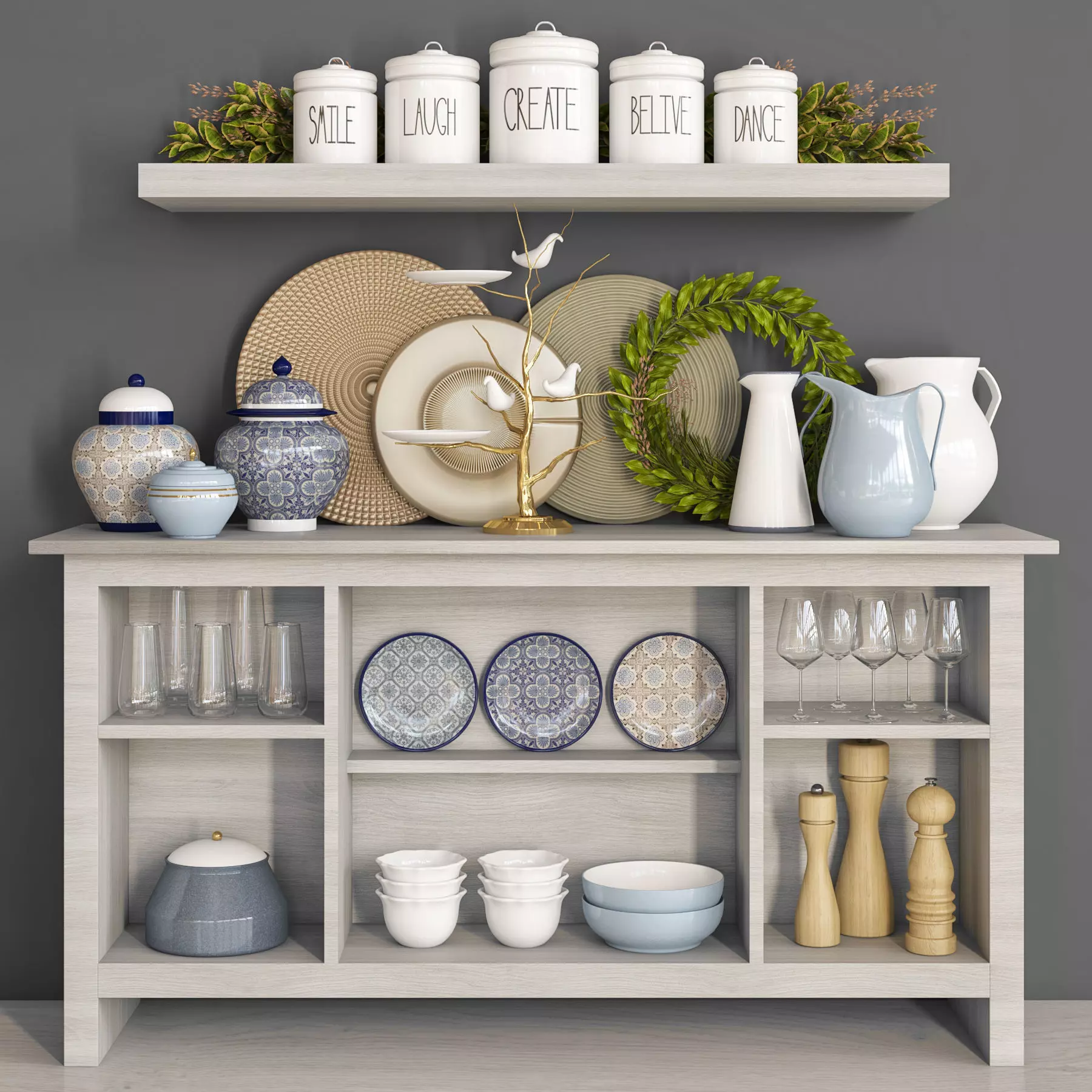 The model has material settings that define how surfaces look (color, shine, transparency, etc.).