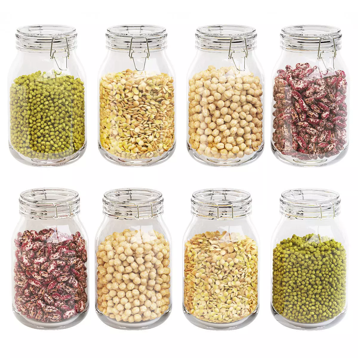 Kitchen glass jars set with beans chickpeas lentils and mung 3D model