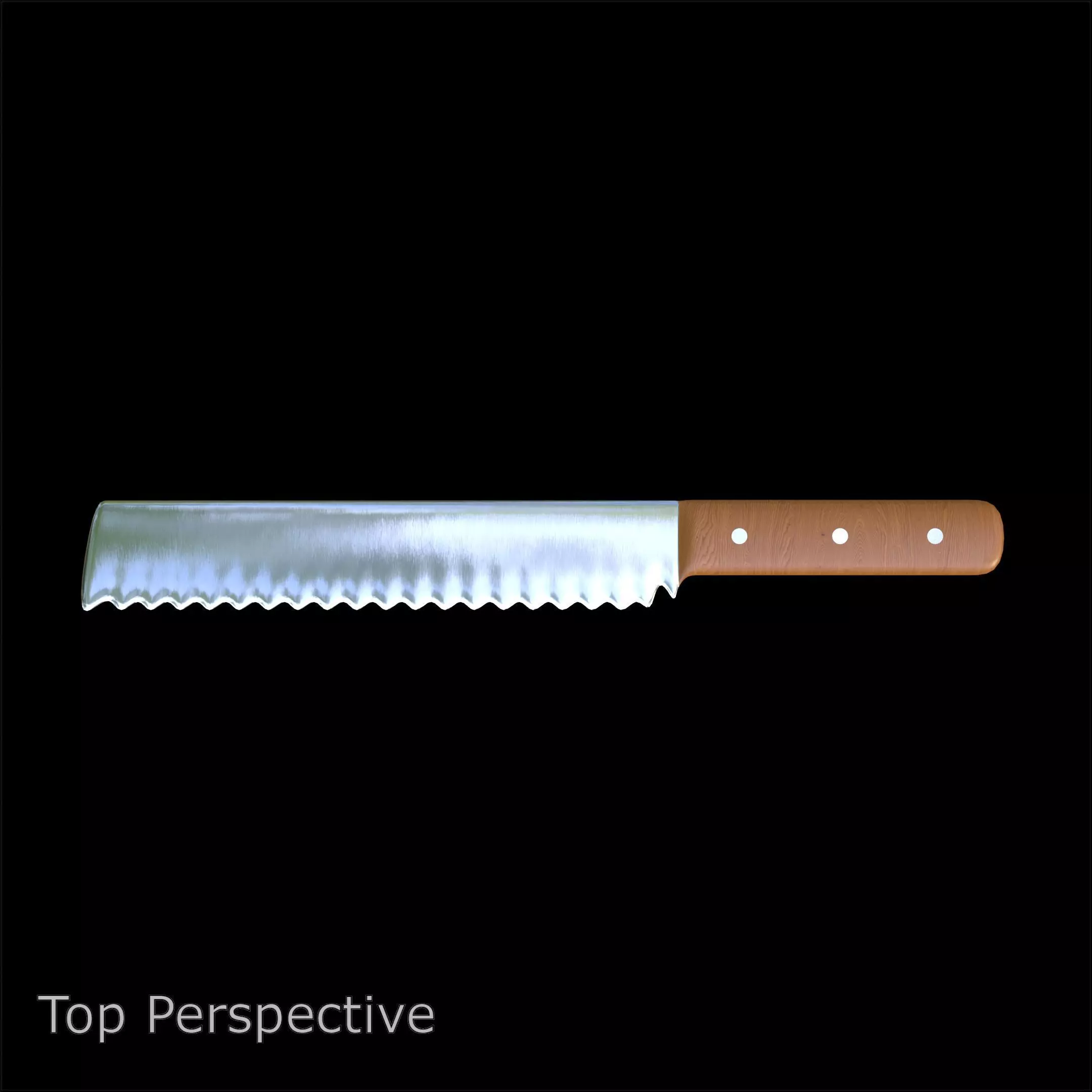This realistic 3D kitchen knife model features a serrated stainless-steel blade and a polished wooden handle with metal rivets for enhanced realism. Designed for bread or pastry slicing scenes, it delivers excellent visual accuracy and detailed craftsmanship.The model is optimized with 4K PBR texture maps — basecolor, height displacement, normal map, roughness, and metallic — to ensure precise light reflection and material realism, making it ideal for product visualization, kitchen renders, or animation.