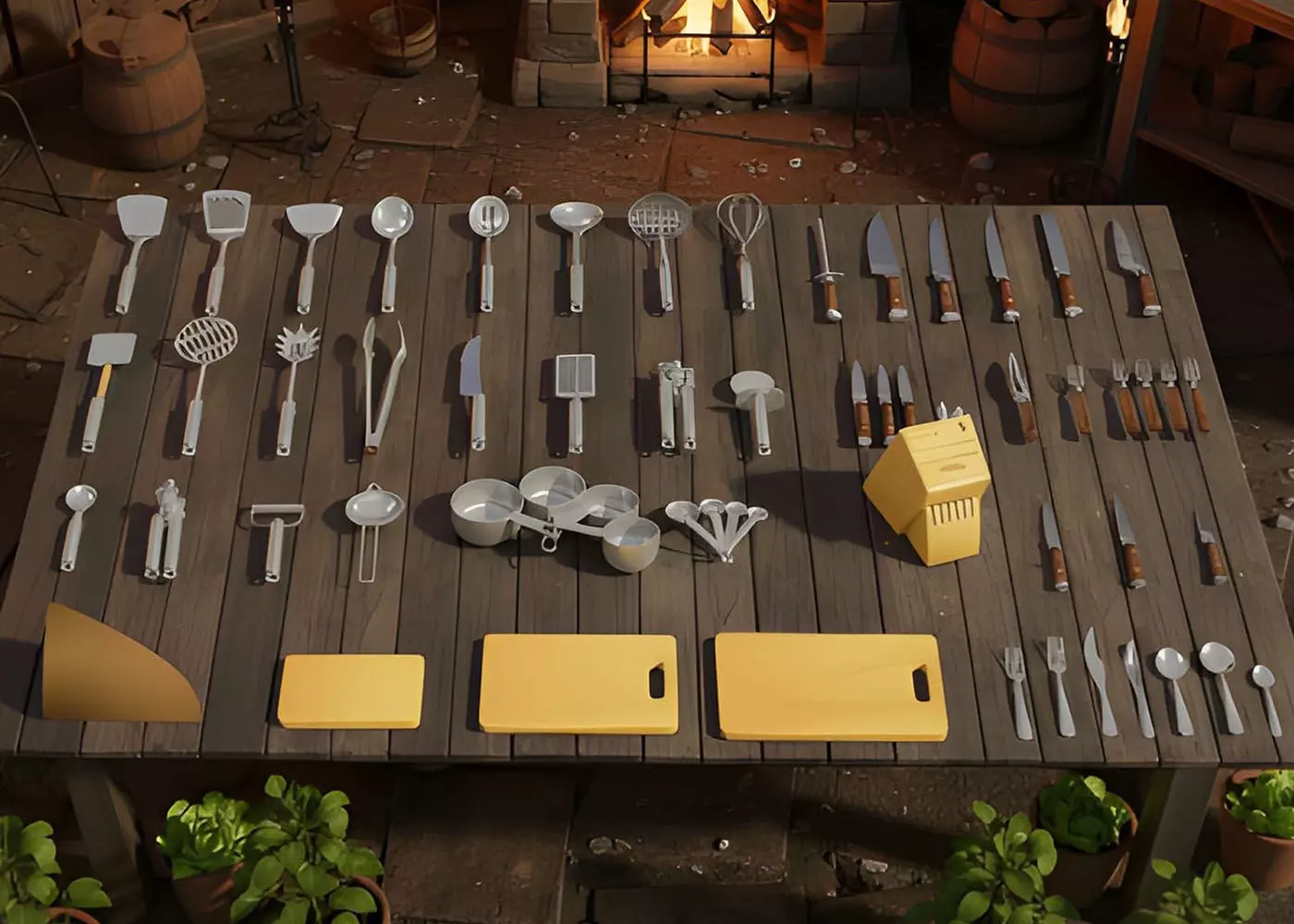• Explore over 50 lowpoly kitchen utensils, including knives, spoons, pots, pans, and more.