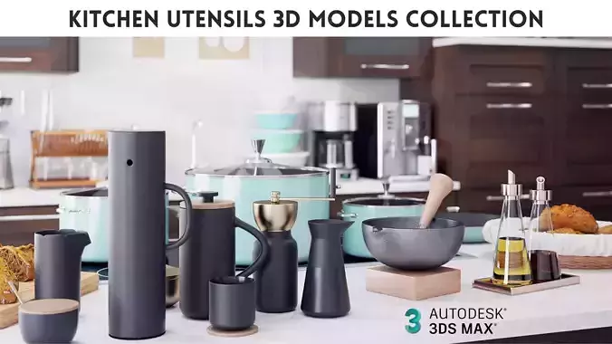 Highly detailed model of the kitchen utensils 3d model set.