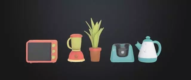 Low Poly Kitchen Appliance Set 3D Model Low-poly 3D model
