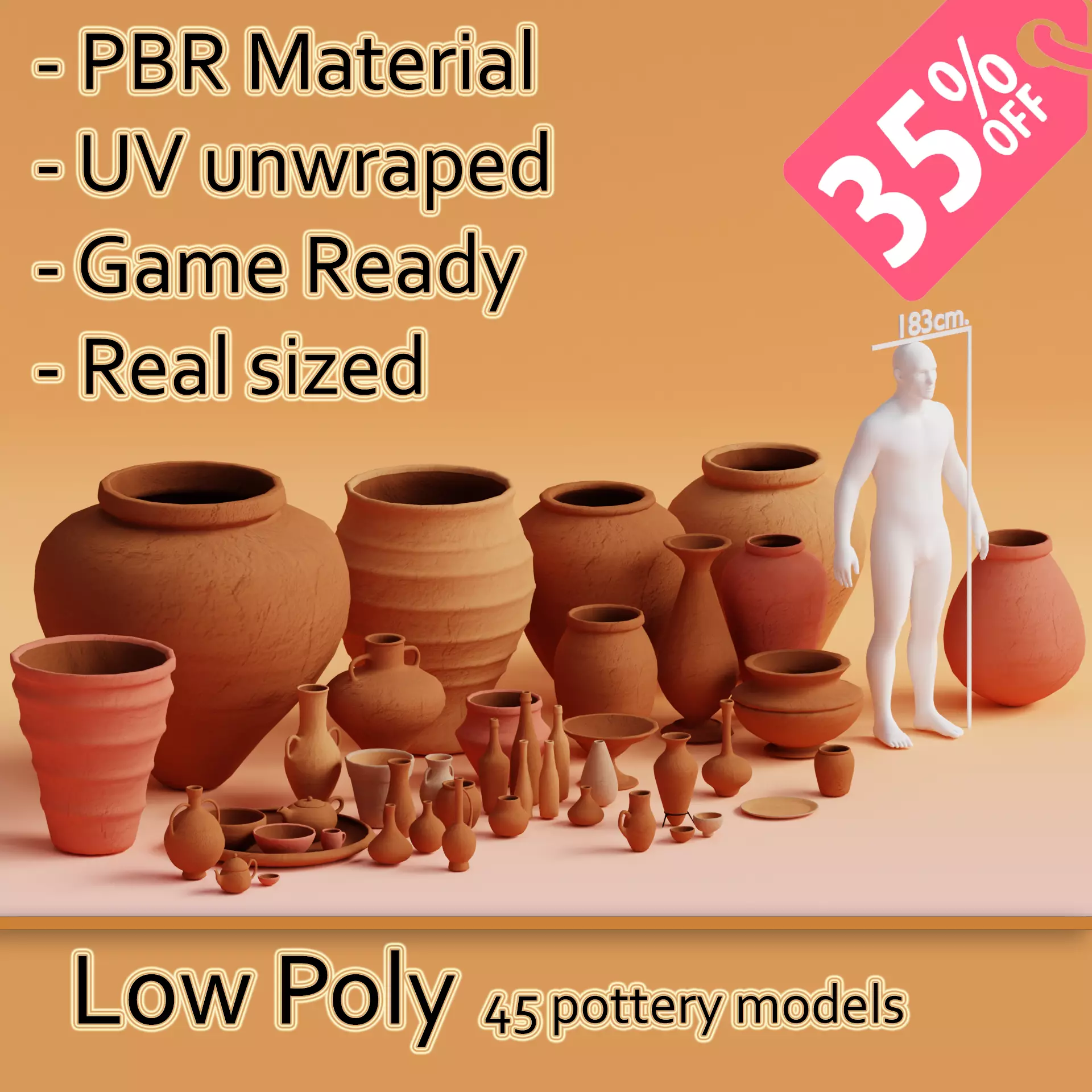 - 45 unique low-poly models