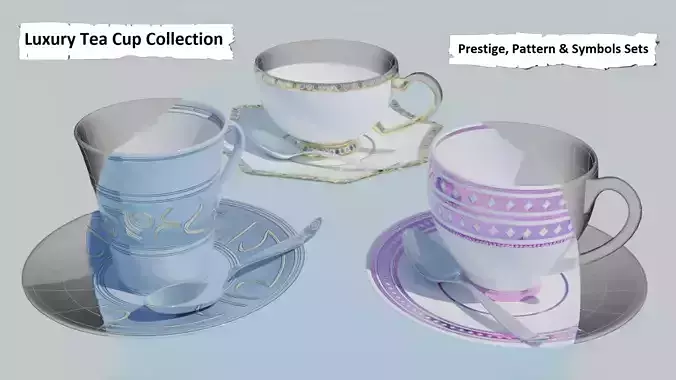 A premium 3D tea cup collection featuring three unique and beautifully detailed designs: