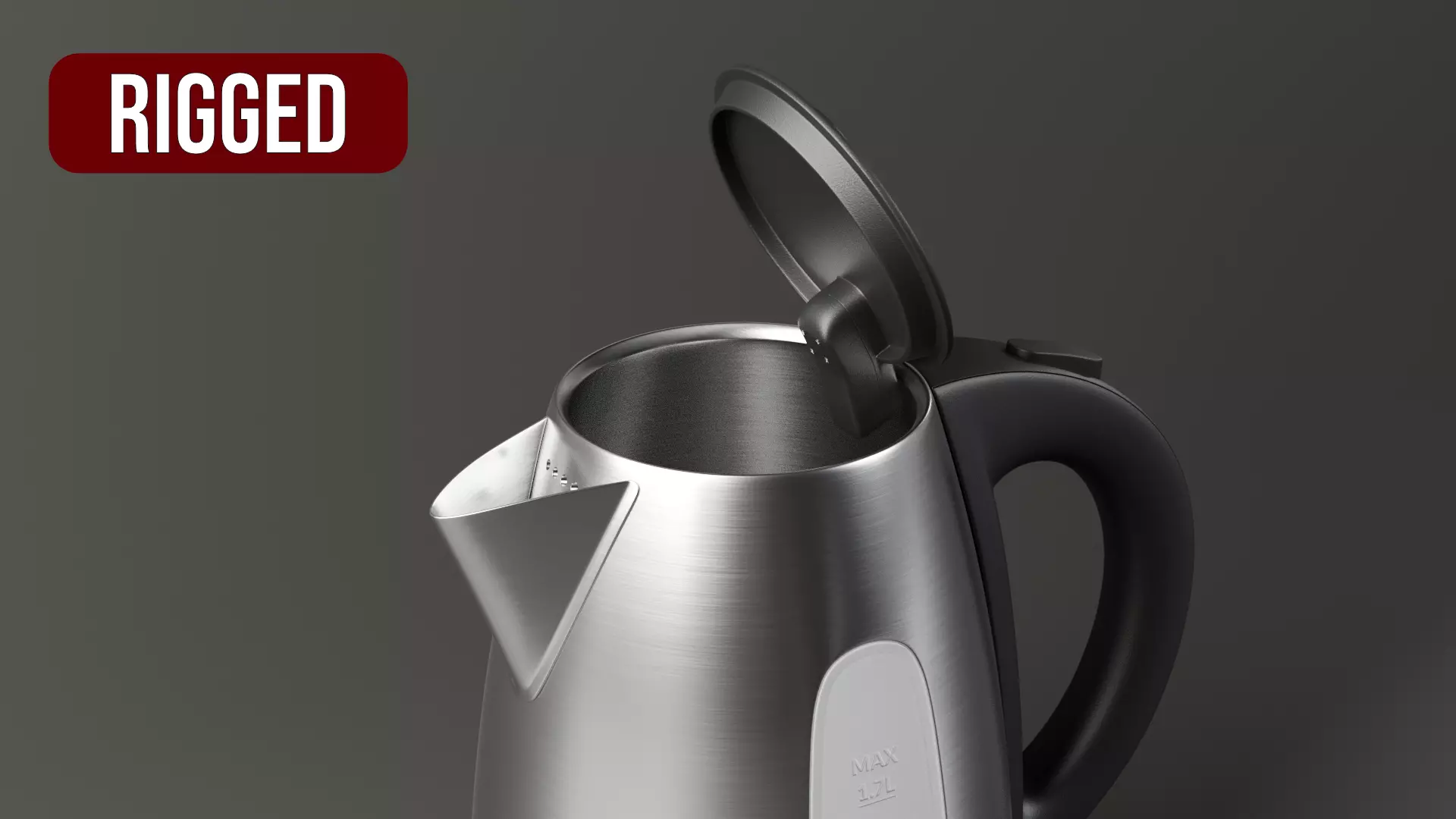 High-quality model of a kettle, optimized for animation / product rendering. Completely rigged, with a redy to animate system for the cable.