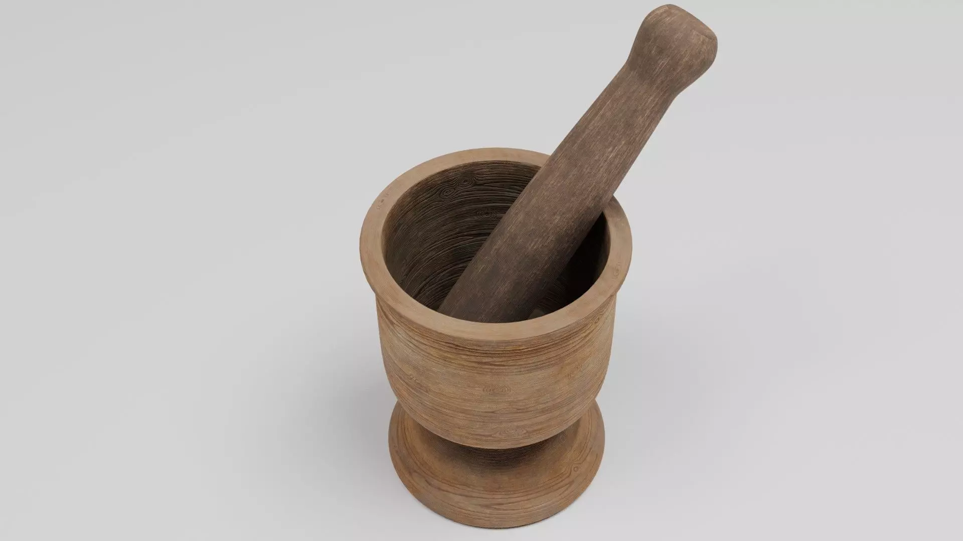Mortar and Pestle Wooden Material, Realistic, Low Poly