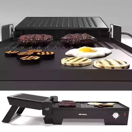 Modeled in 3ds max 2015 . Vray and Corona render files are ready to use.In addition you can use foods separately for different scene, there are Burgers,fried egg,eggplant and sliced onion. All textures are placed in resources folder.product info:Dimension: 43L-30W-19H3-in-1 electric table grill with smooth and ribbed plate, contact plate, extendable barbecue. 180 ° lid rotation. Adjustable thermostat.