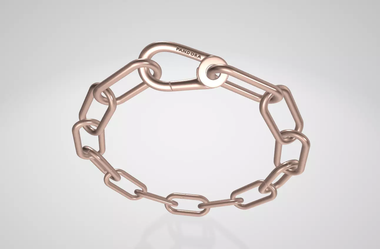 Pandora ME Medium-Link Chain Bracelet-created by blender mesh clean, soft, smooth. -mesh count less than 200000 -created by mesh 4 -main axis (0,0,0) is located at the lowest center point of the product -attached material with substance paint -exported to glb view -has accompanying textures: diffuse, normal, hight, ao, roghness