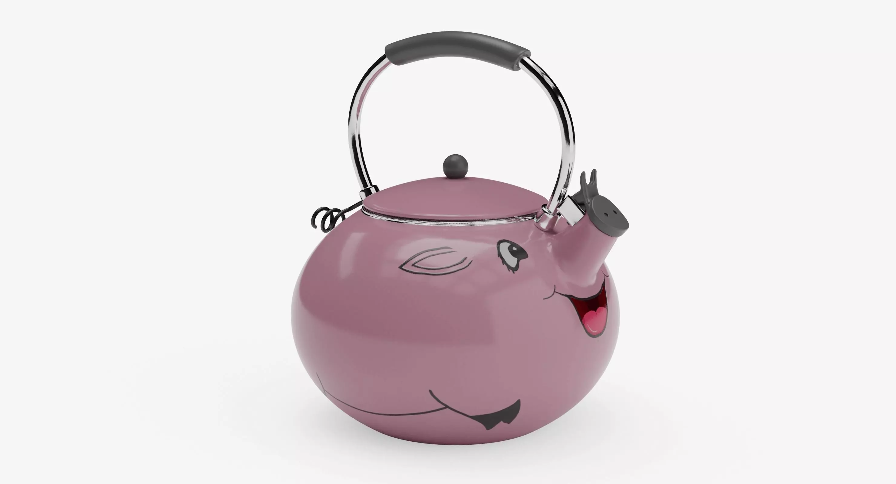 Tea kettle with a hand painted piggy texture. Great for a fun kitchen decoration. It has clean 100% quad geometry, and is sub-division ready. Textures are 2048 x 2048 resolution. UVs have been unwrapped and are non-overlapping. All parts and materials are logically named, grouped, and are parented to the main kettle body. Material preview images were rendered with level two sub-division. Wireframe renders were rendered with no sub-division except for the one labeled Sub-division Level 2.Preview images were rendered in Blender 2.79 Cycles Renderer.Native file format is Blender 2.79 (.blend)Exported as:.obj.fbx.dae.3ds
