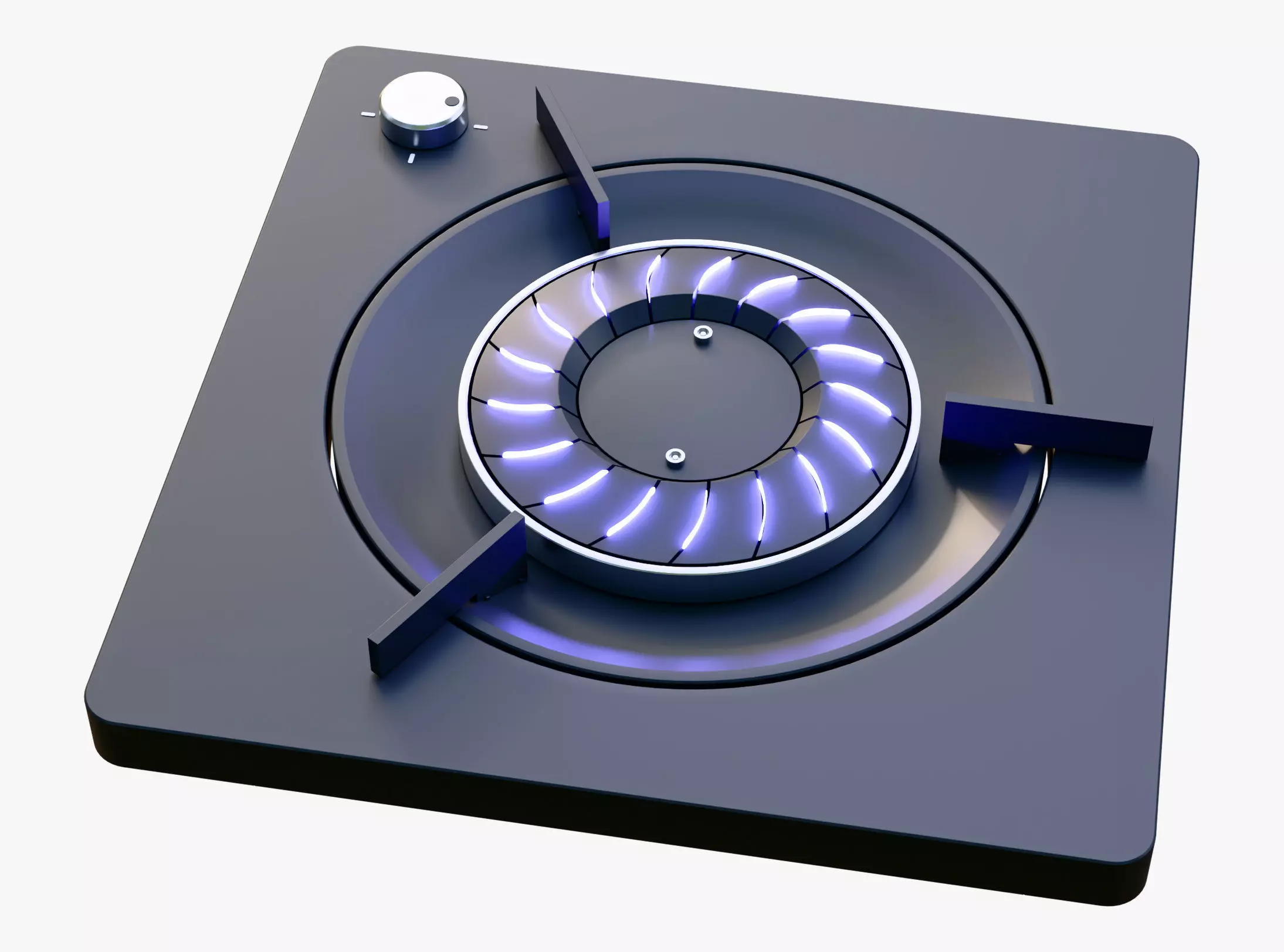 Portable gas stove featuring a monolithic matte housing and radial burner design. Minimalist aesthetic combining functional ergonomics with a futuristic silhouette.