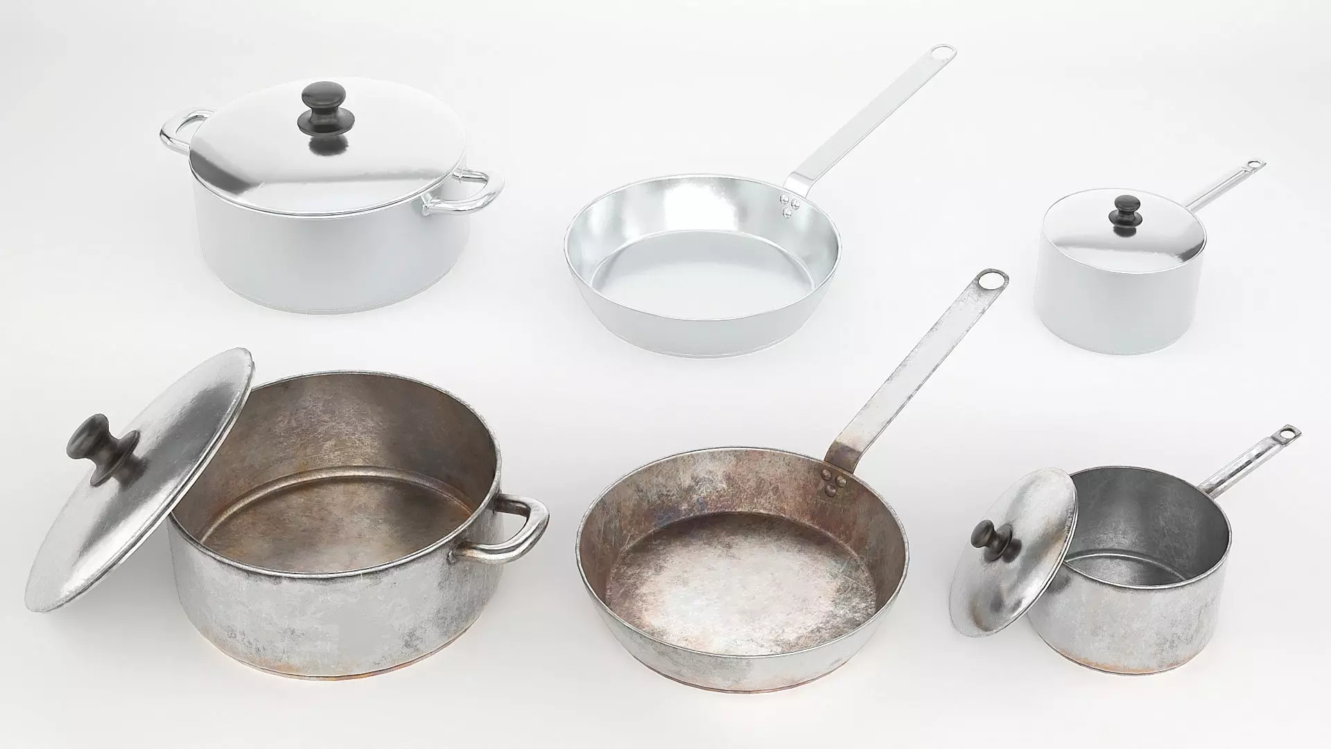 Materials:The pots and pan use PBR textures in 4096x4096 (color, roughness, ambient occlusion, normal map and metallic). The vray 3ds max file is provided with vray materials using PBR textures. The blender file use materials created with PBR textures. The standard 3ds max use a standard material with the PBR textures.Each material and texture is named .