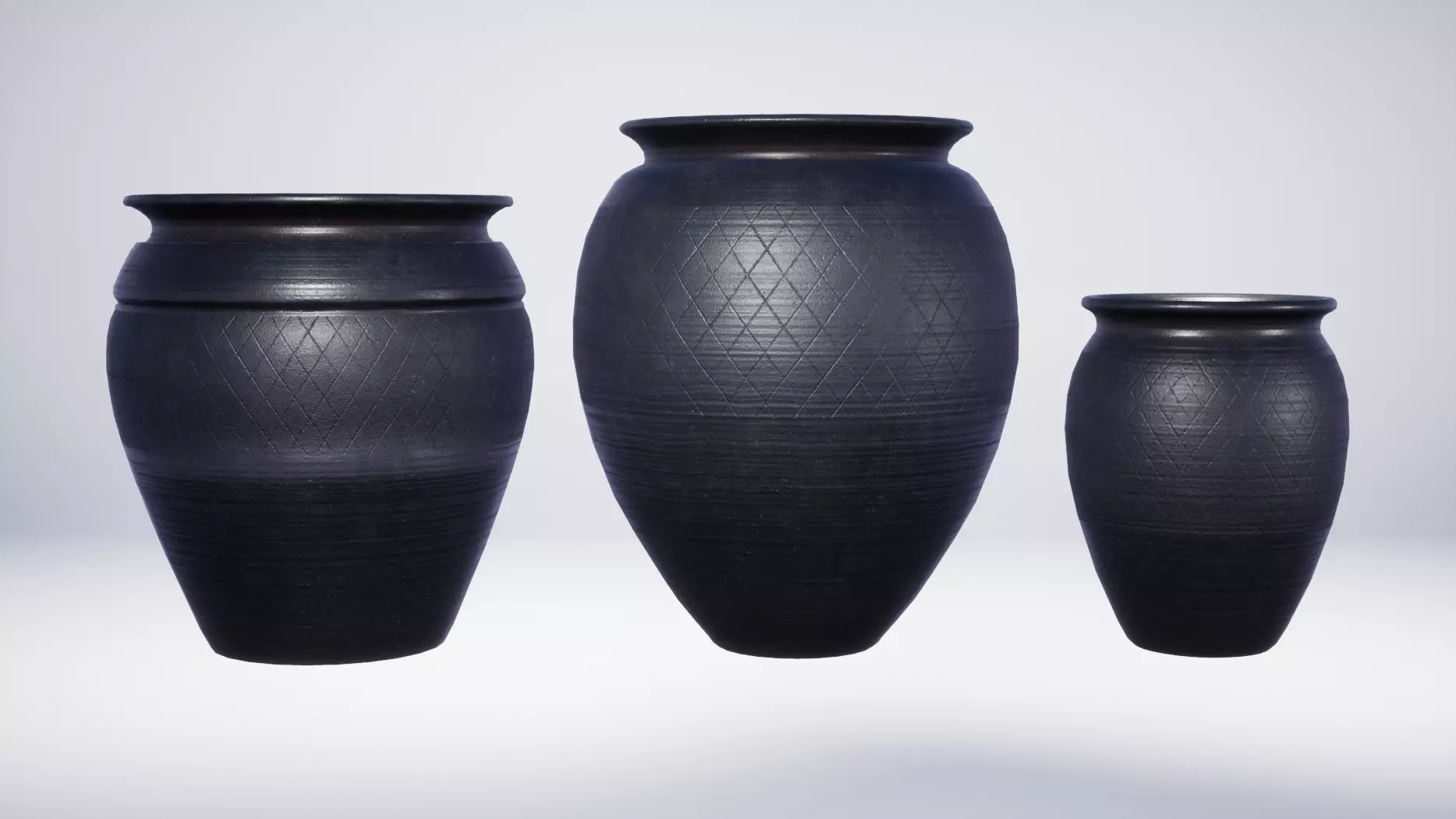 Roman Black Burnished Ware Pottery - 3 Variations Low-poly 3D model
