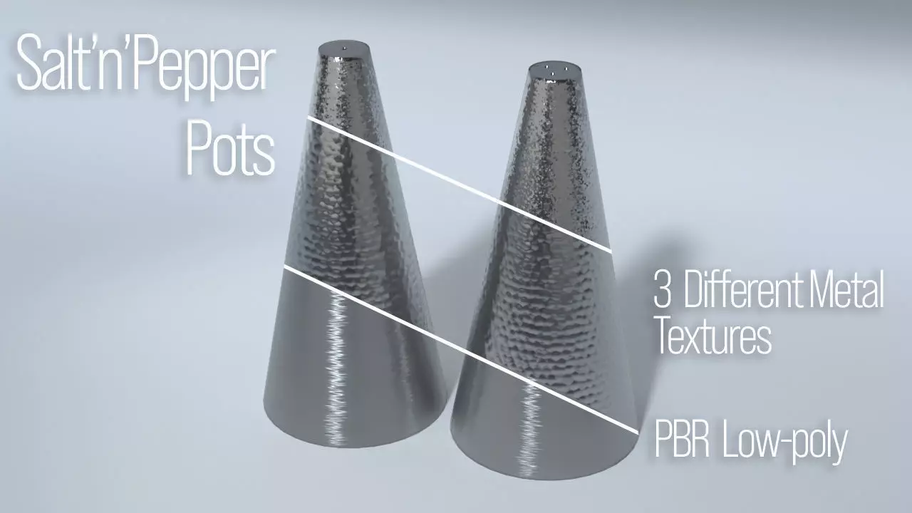 A model of a pair of Salt and Pepper Pot with 3 different texture sets.