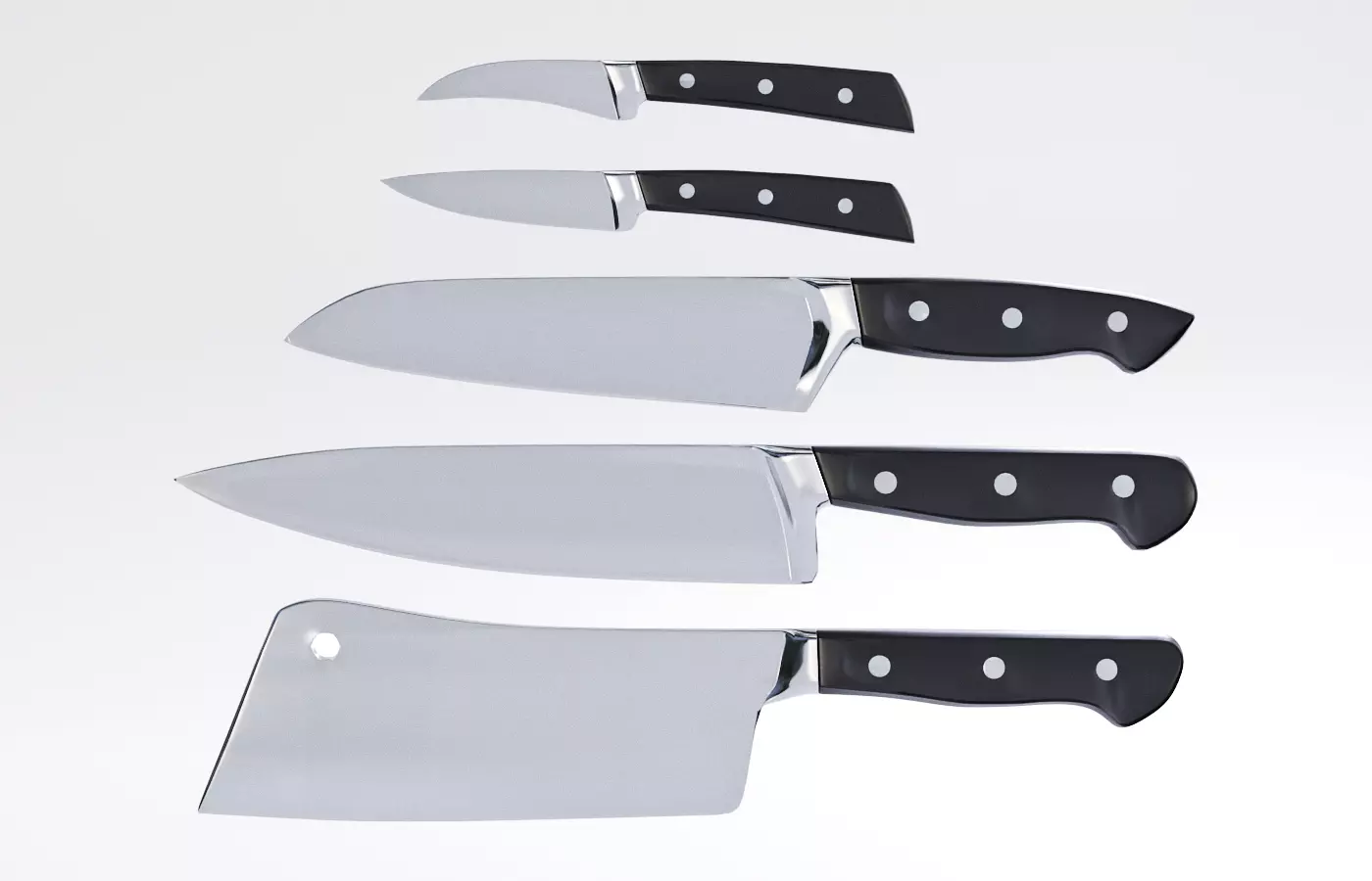Set of Kitchen Knives - Knife Collection Low-poly 3D model