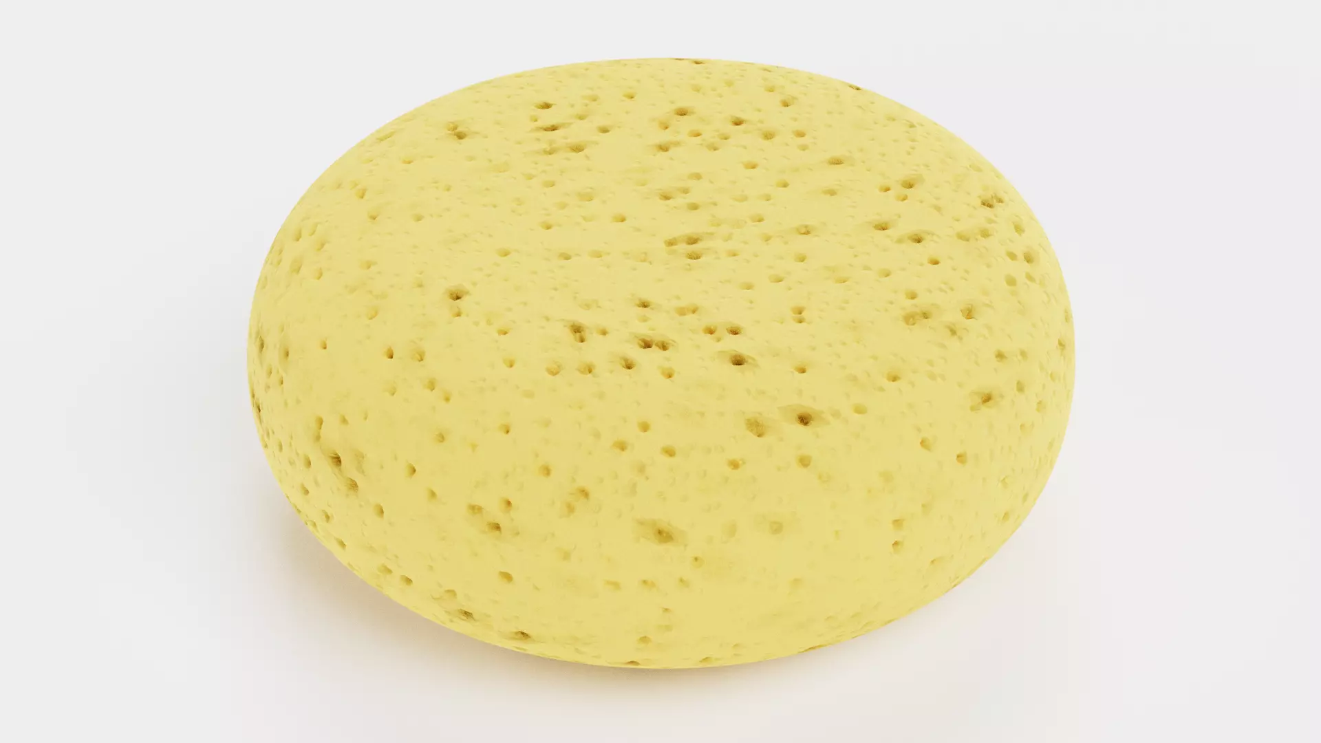 A round cellulose sponge with a texture-based pore structure (created using a displacement map), and a neutral household design. The mesh follows clean proportions of a classic cleaning or washing sponge used across kitchen, bath and general household tasks. The neutral, generic design and consistent scale make it reliable for product shots and cleaning-tool visualizations.