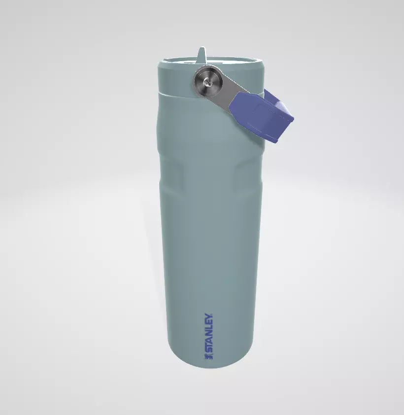 Stanley Iceflow Aerolight Flipstraw Water Bottle 24 oz Blue Cactus (Box)-created by blender mesh clean, soft, smooth. -mesh count less than 200000 -created by mesh 4 -main axis (0,0,0) is located at the lowest center point of the product -attached material with substance paint -exported to glb view -has accompanying textures: diffuse, normal, hight, ao, roghness