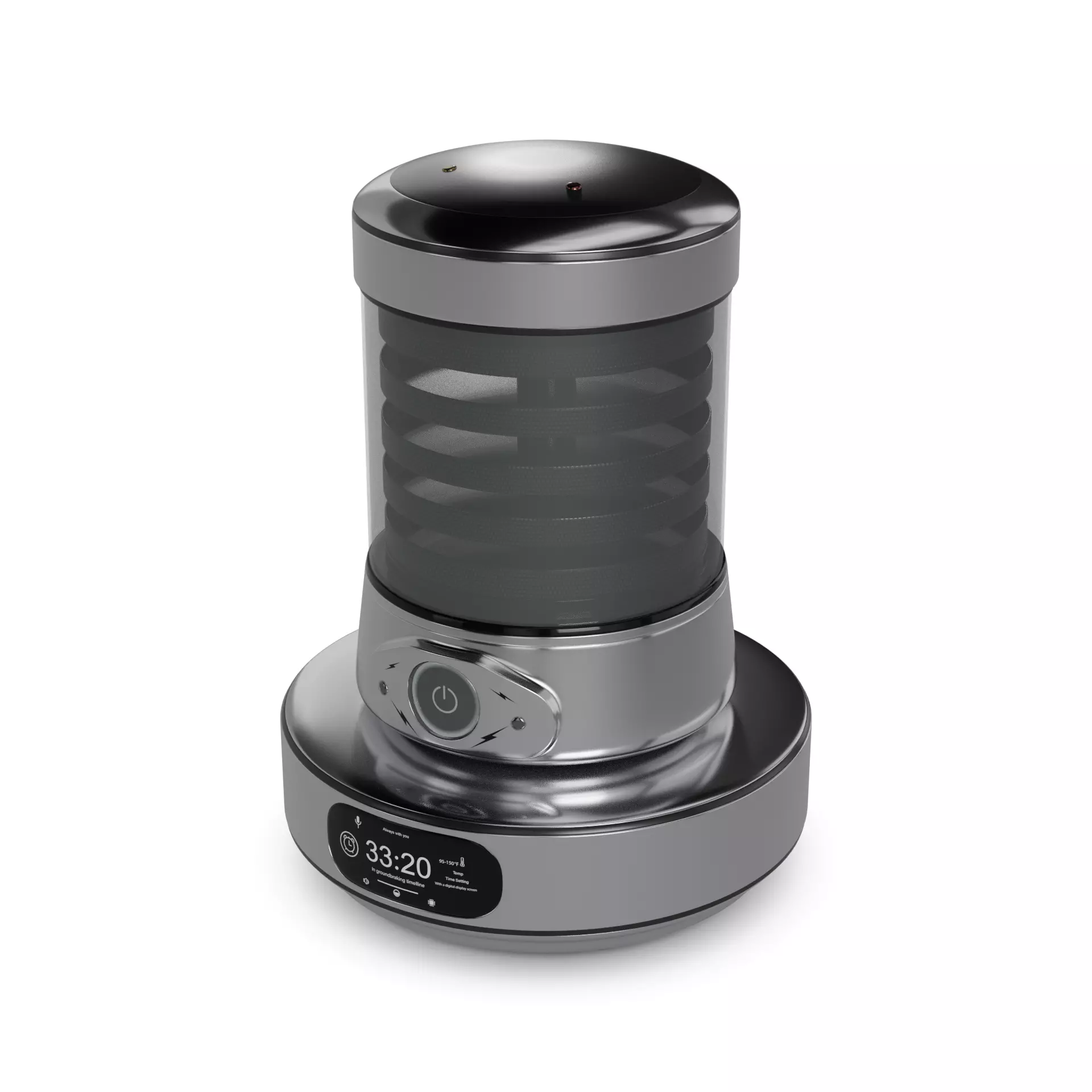 A cutting-edge steamer in futuristic silver, with holographic display and voice recognition technology, setting new standards for kitchen gadgets in a current timeline.