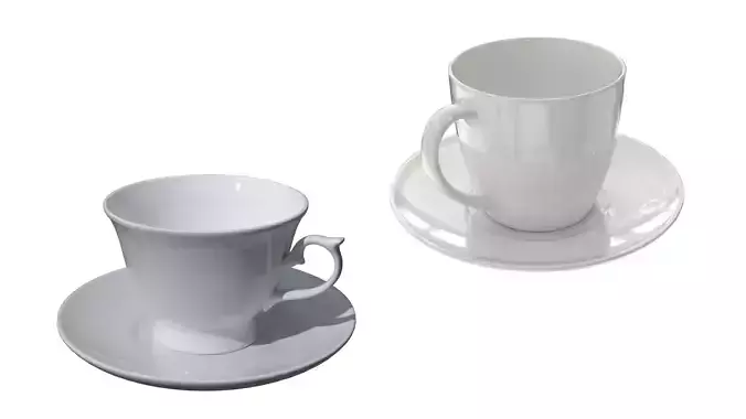 A versatile teacup 3D model combo featuring two unique teacups with matching saucers, ideal for kitchen scenes, 3d printing, restaurants, interior visualizations, and table-top props. This set is suitable for games, arch-viz, and product renders, while also being adaptable for 3D printing workflows.