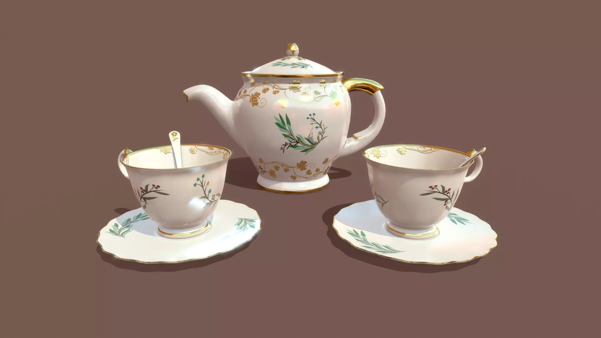 Teaset Real-Time rendered in Marmoset Toolbag.Normal baked from a high poly model in Substance Painter.PBR Textures:(4K).targa (2K,1K ,512).JPGlowpoly mesh Polygons:3558 Vertices:3538