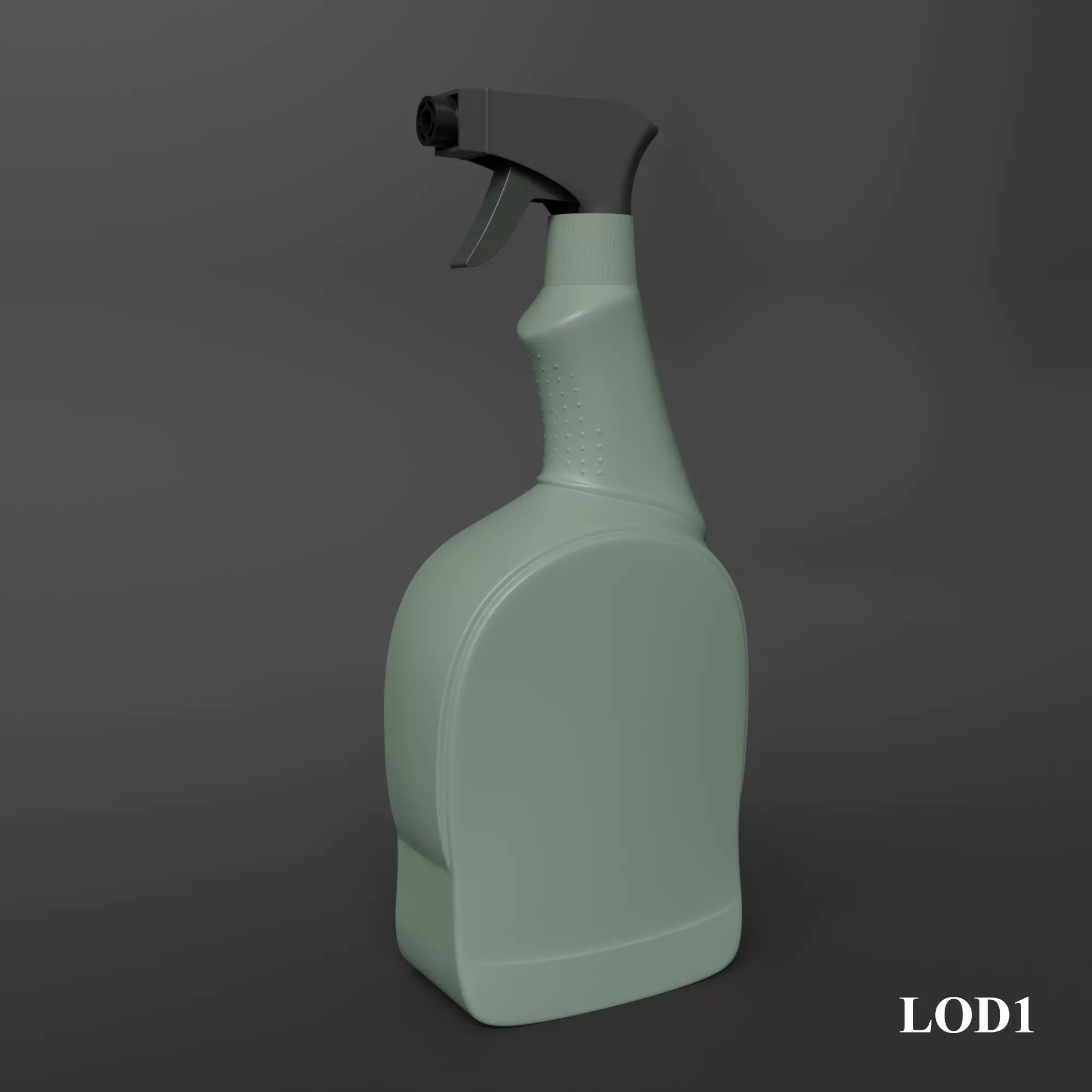 This spray bottle model includes three LOD versions for different levels of detail. The renders show all LODs side by side so buyers can easily compare the geometry density.