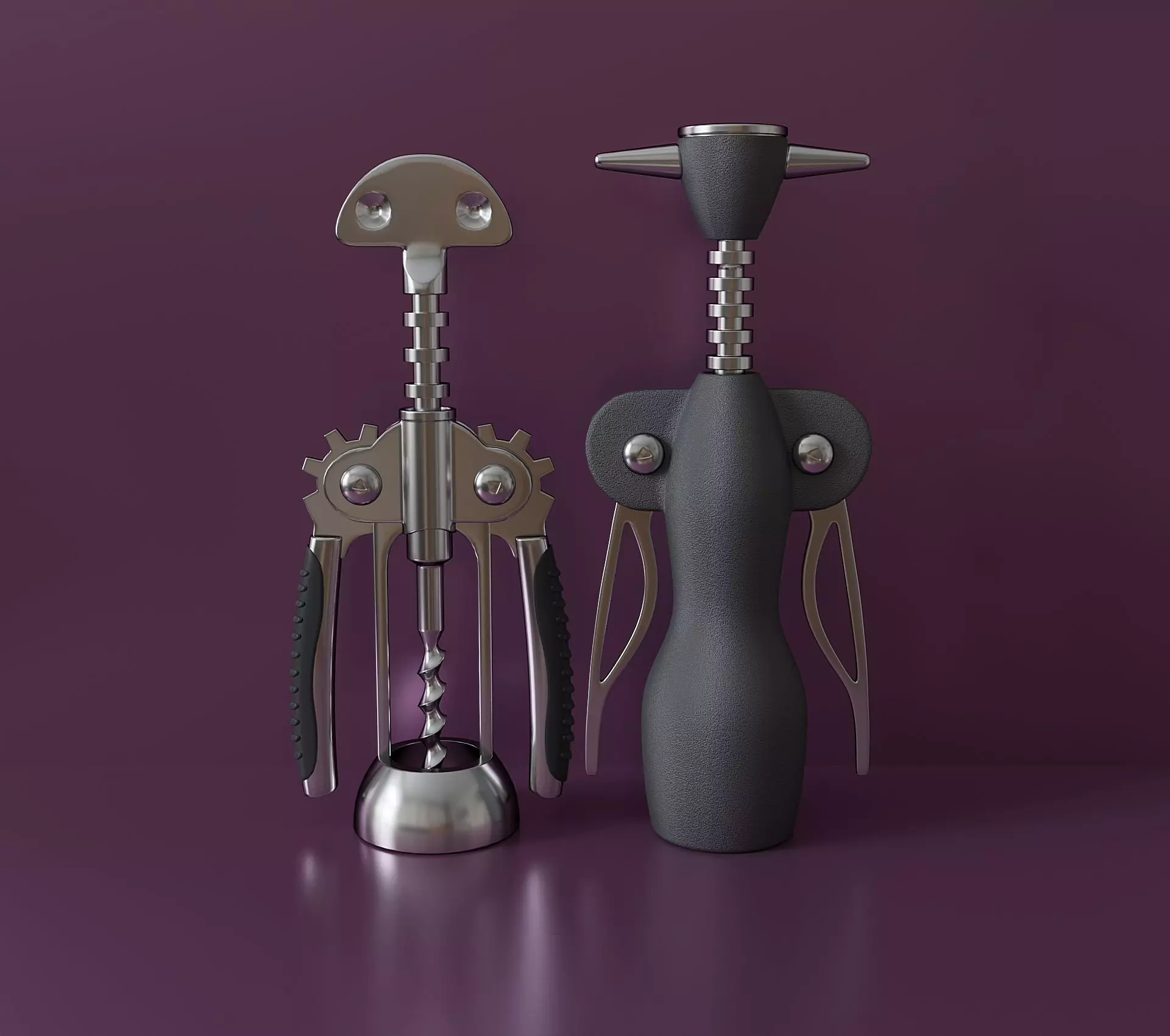 The set includes two different wine corkscrews. Models consist of several moving objects. (shown in the picture) Objects are not linked to each other. Textures were not applied.